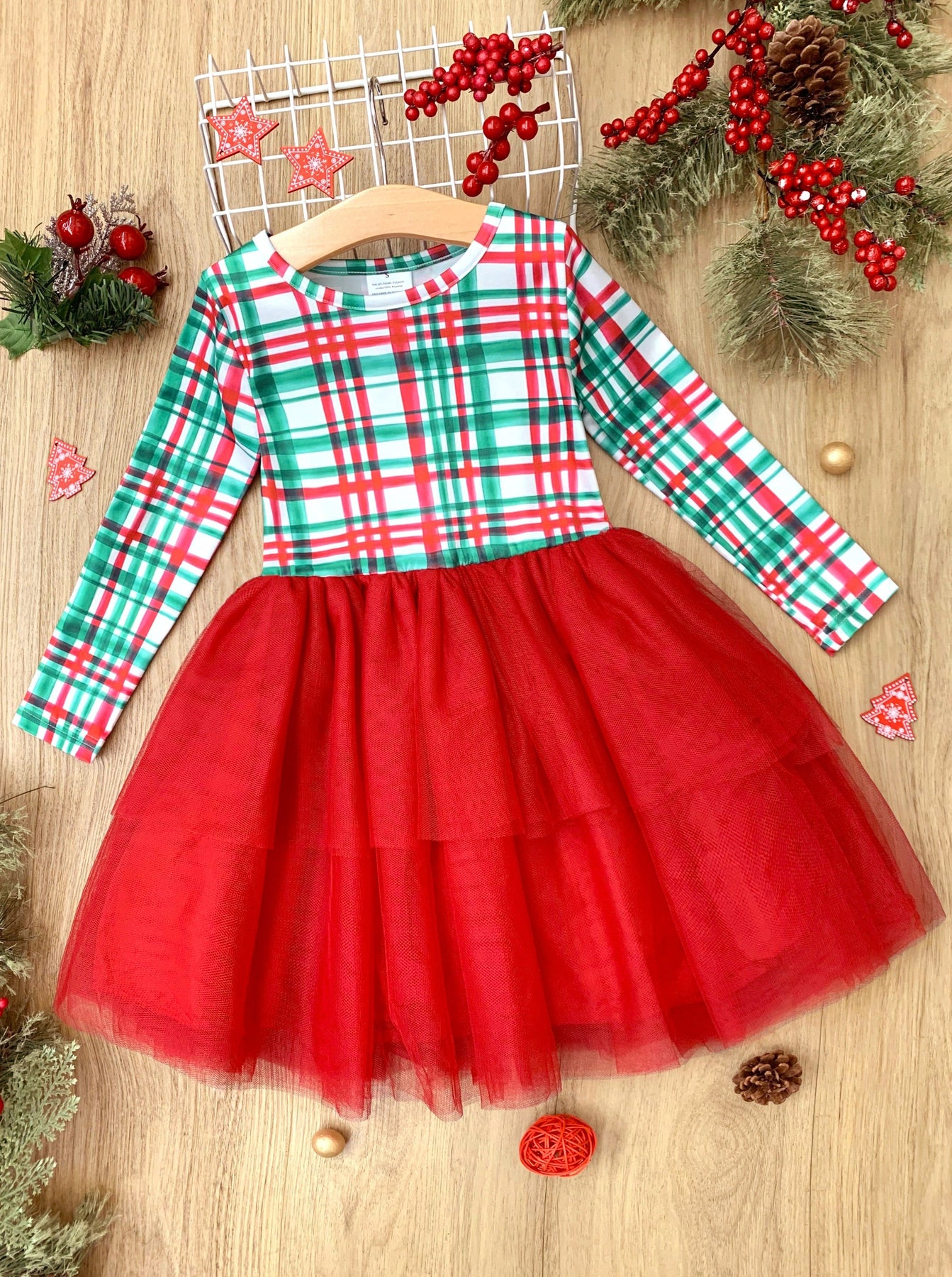 Wrap your little girl in style with our plaid holiday tutu dress and she'll look like the prettiest gift under the tree. The plaid pattern and layered tulle skirt are the perfect combo for a holly jolly look, so she can look picture-perfect in your family photos.