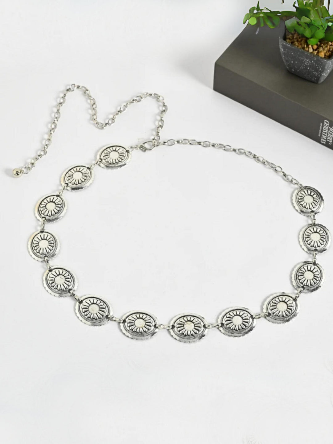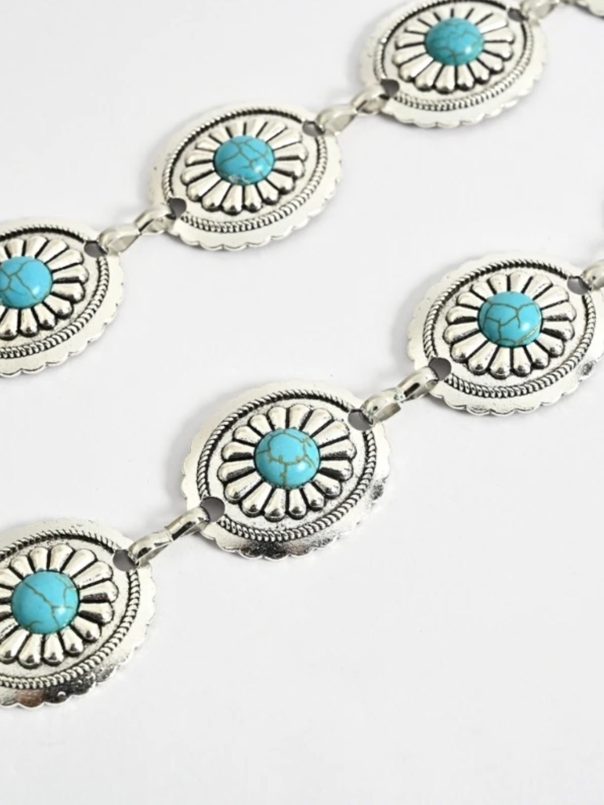This turquoise chain belt transforms any outfit from plain to perfect. Decorated with turqouise charms, this bohemian accessory adds color to her wardrobe. A stylish statement piece she'll love to wear!