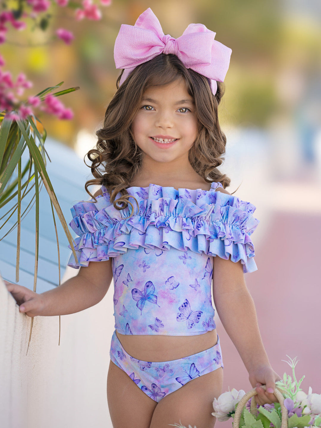 Mia Belle Girls Swimwear | Butterfly Ruffle Tankini Two Piece Swimsuit