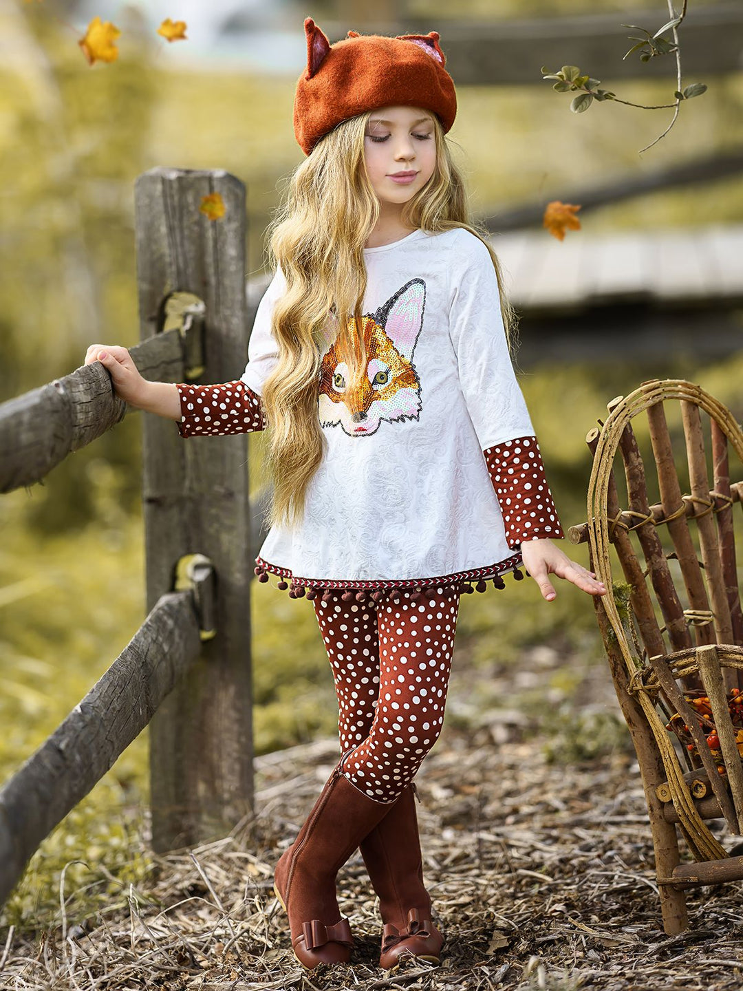 Girls Cuffed Long Sleeve Applique Swing Tunic And Legging Set