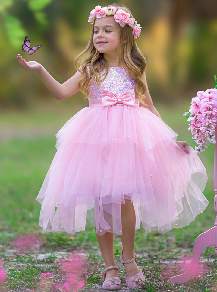 Looking lovely comes easily when she wears our pastel pink tutu gown. Sparkly sequins on the bodice add a magical shine to its twirl-worthy skirt for an all-around beautiful look. Made to make pretty girls extra stunning!