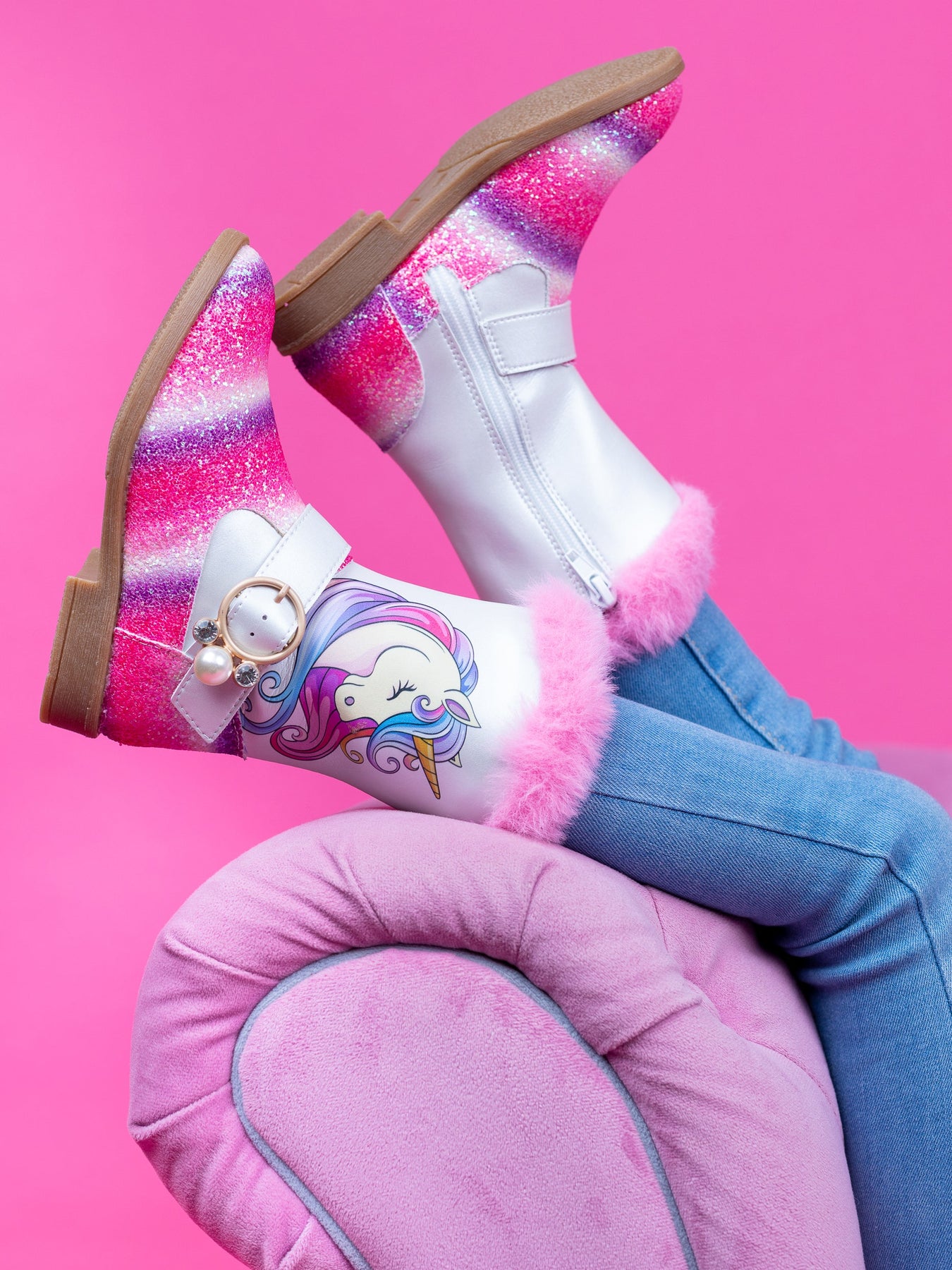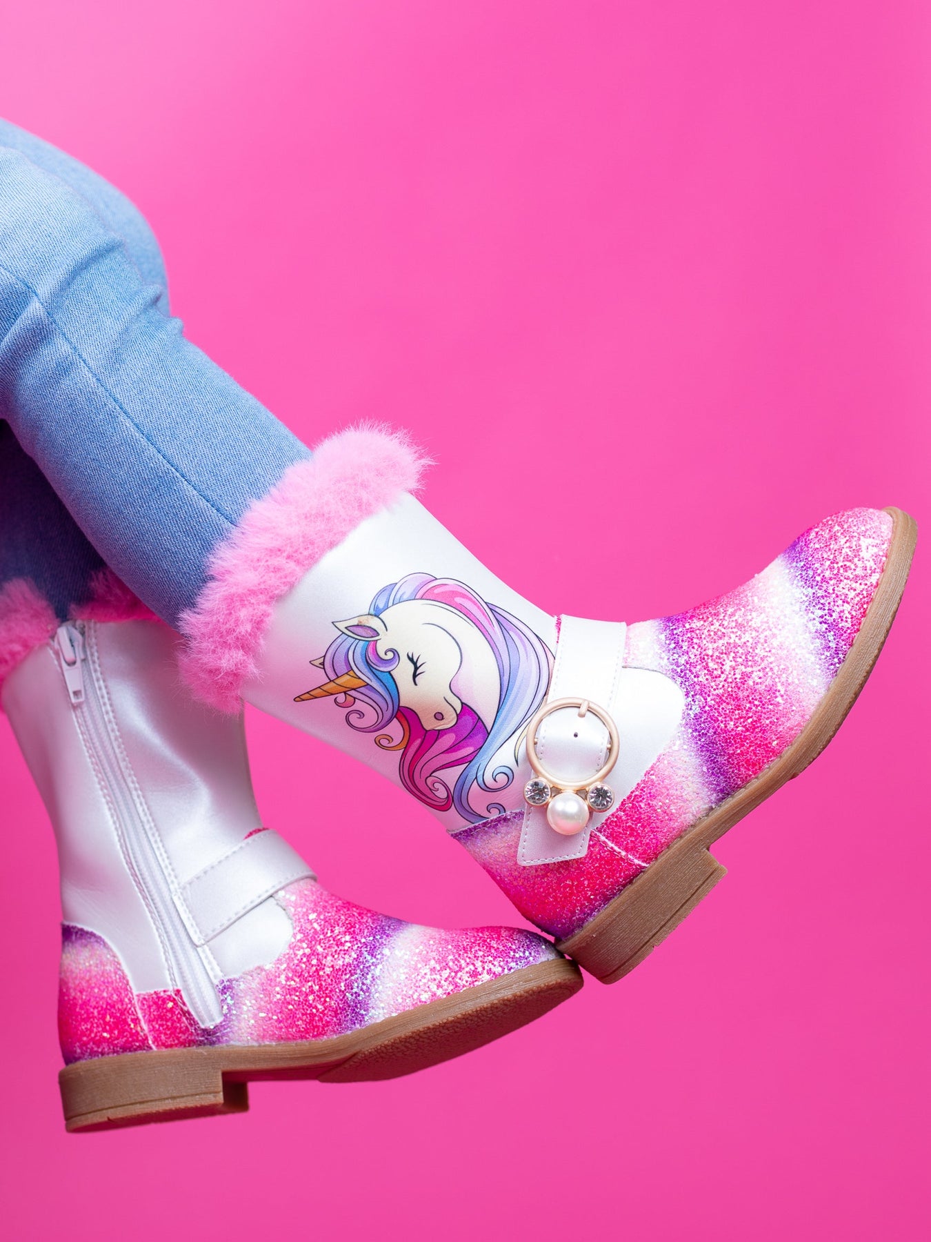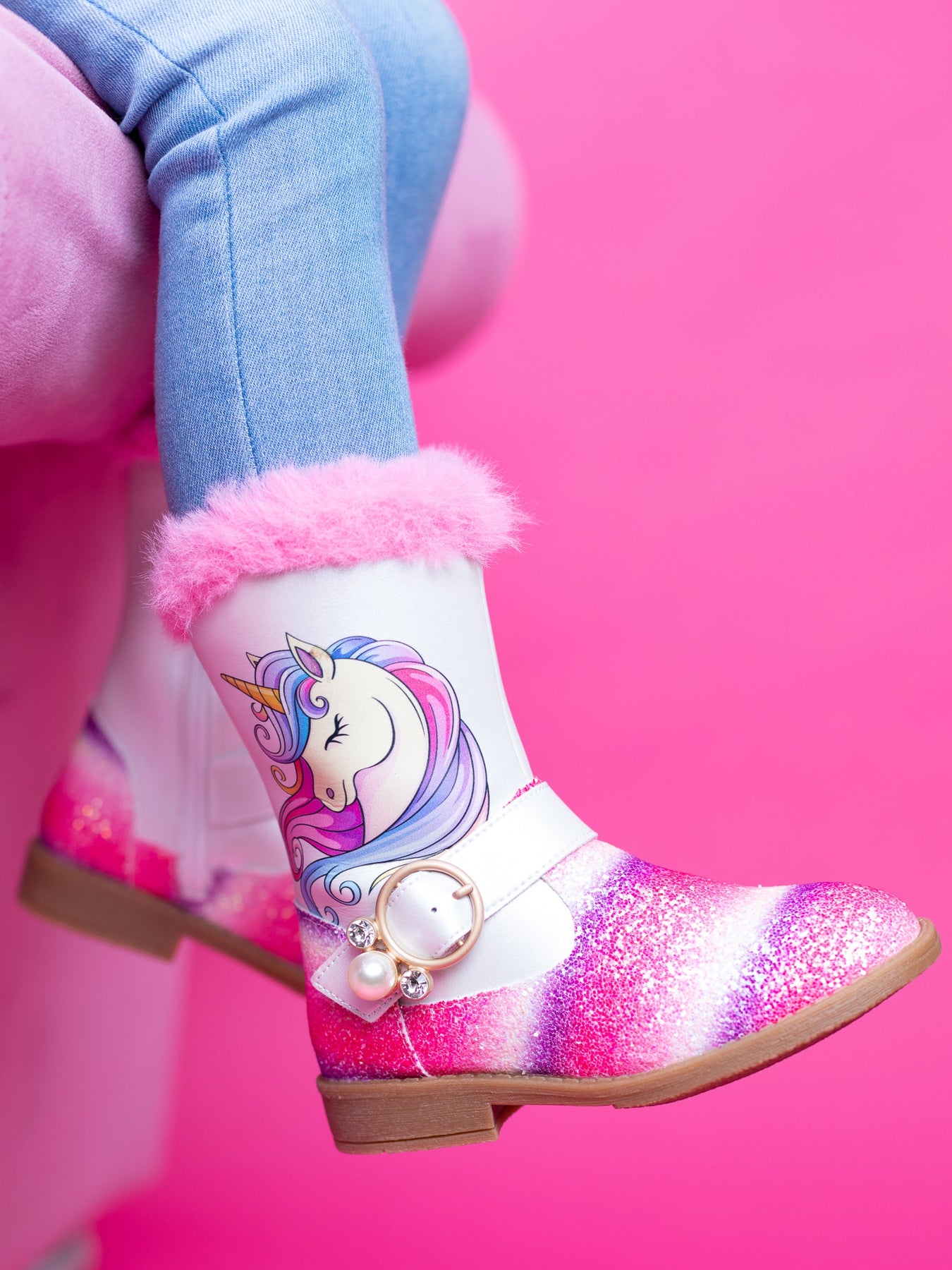 Unicorn Glitter Boots with Faux Fur Trim By Liv and Mia