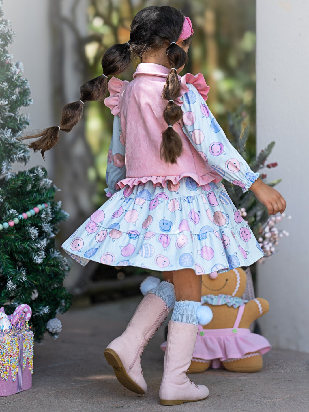 SmileyWorld Feeling Festive Faux Suede Vest and Dress Set