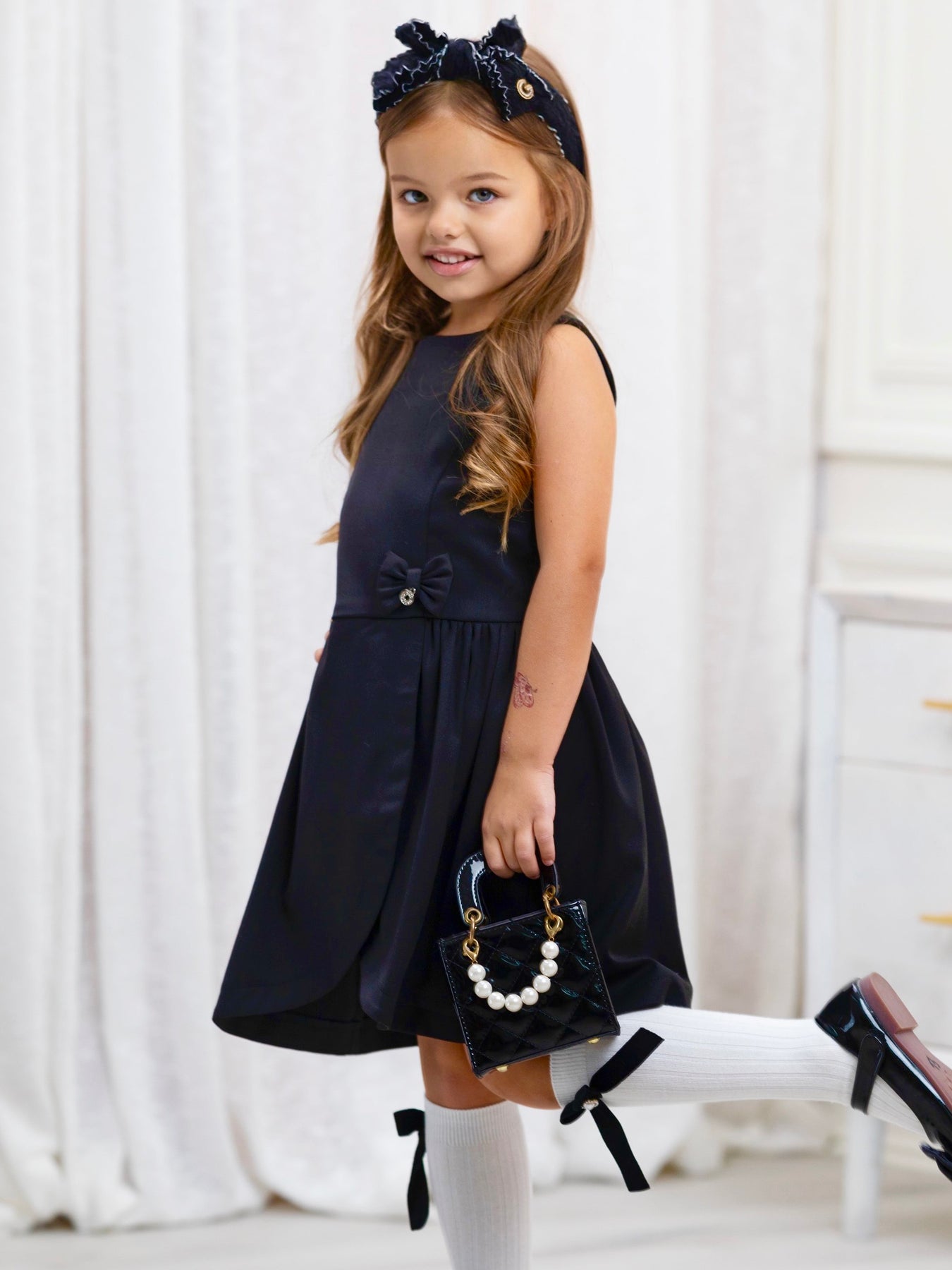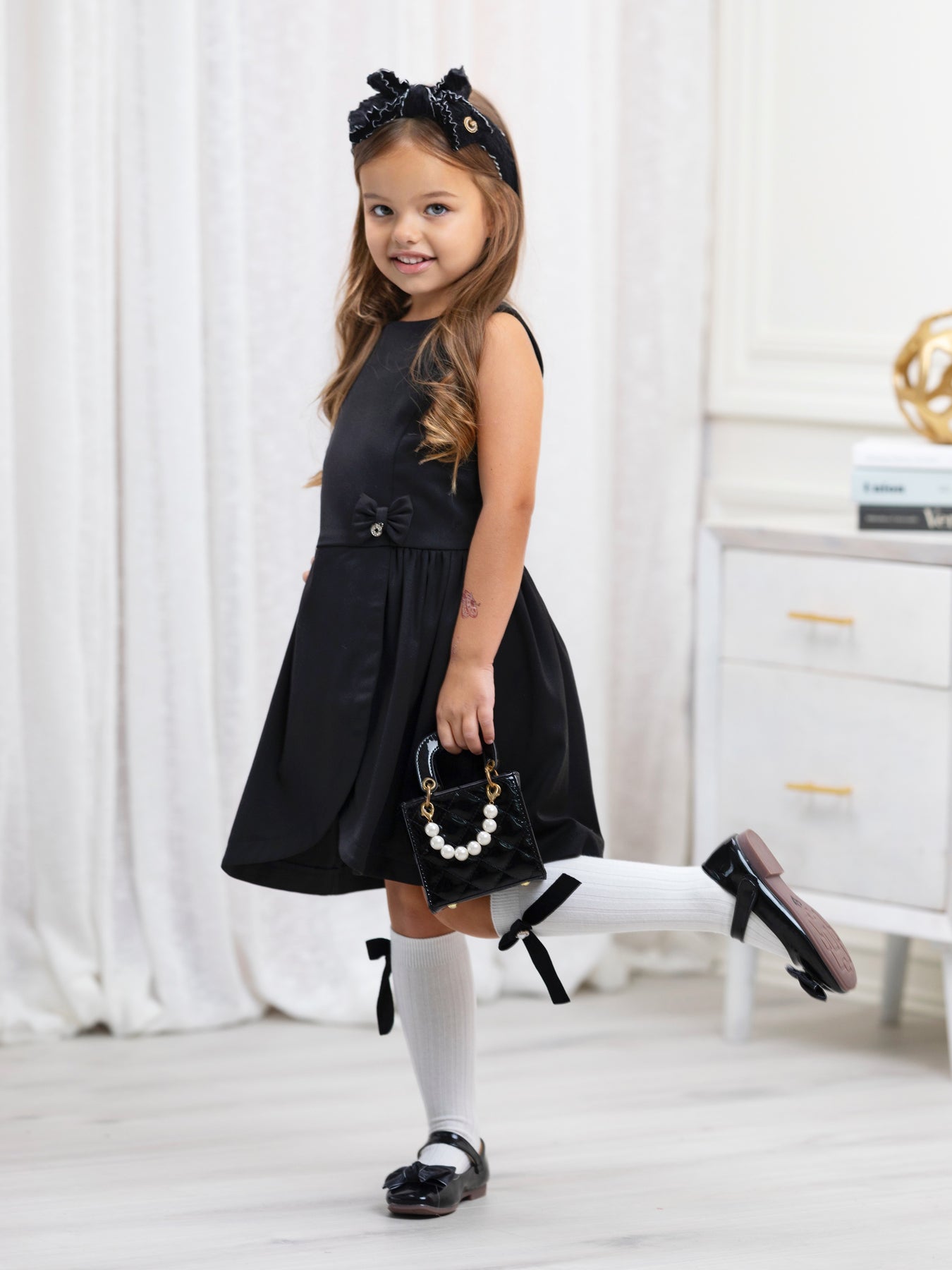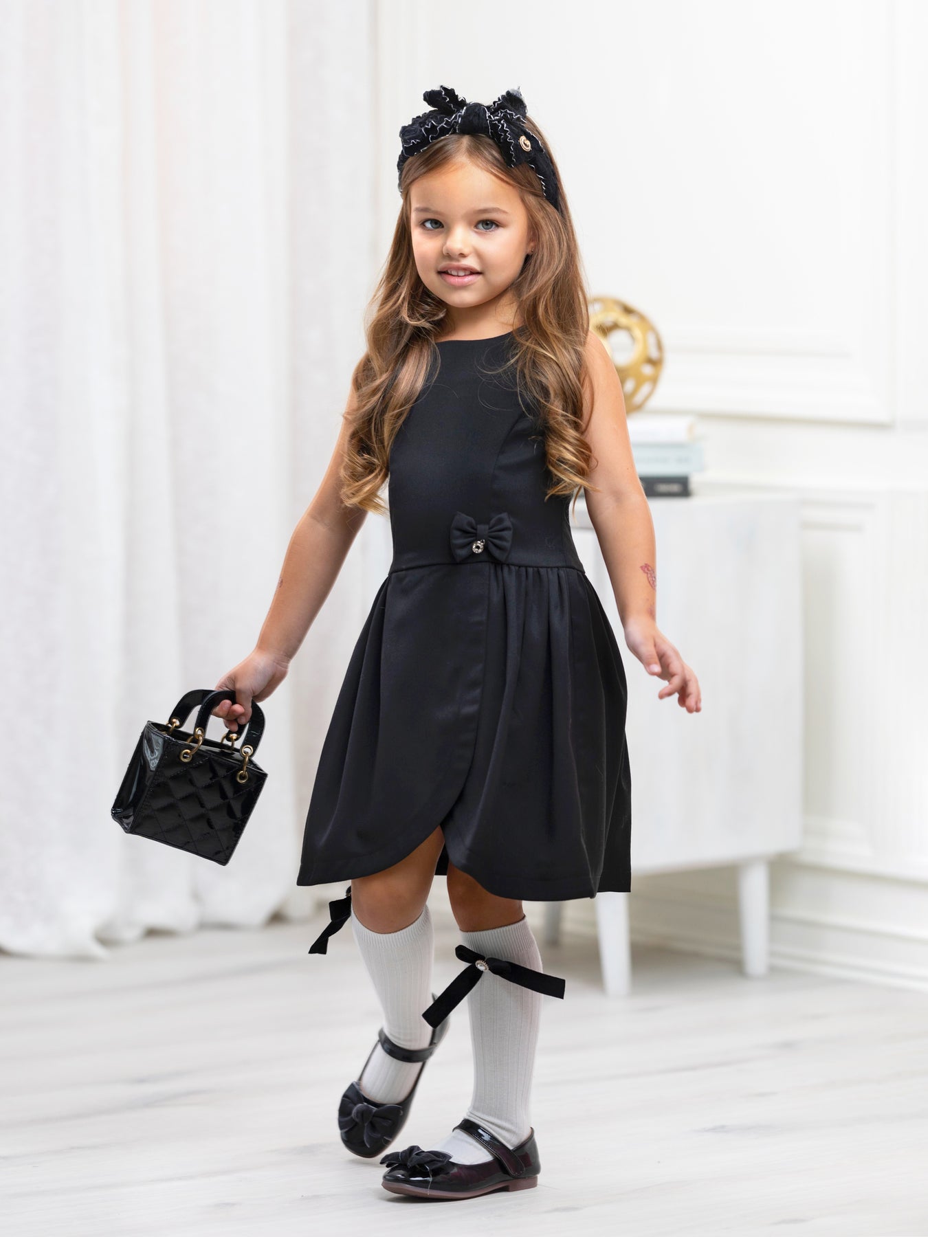 Classic Black Bow Accent A-Line Dress by Kids Couture