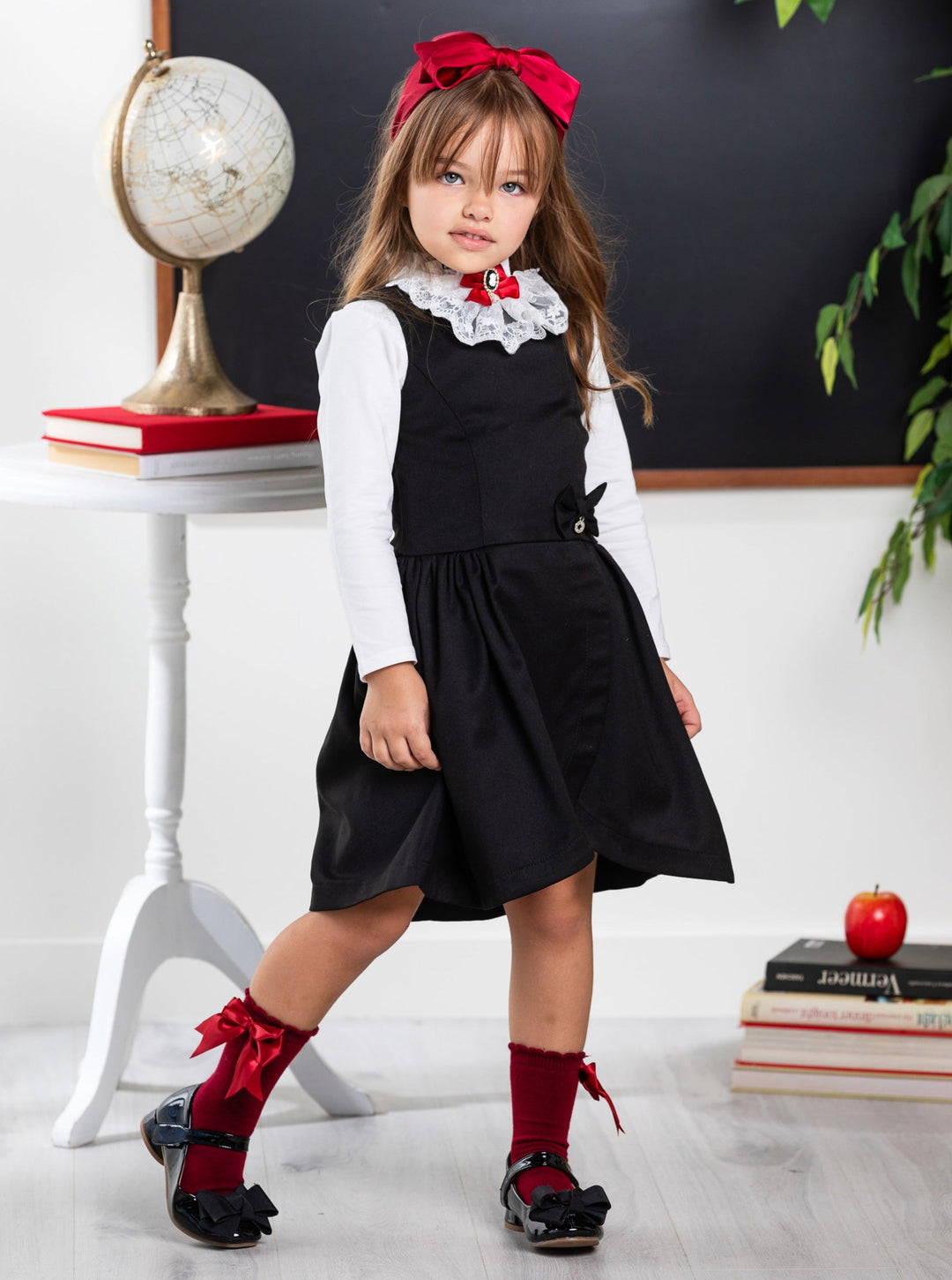 Sophisticated black tulip hem girls uniform dress perfect for back to school and formal events