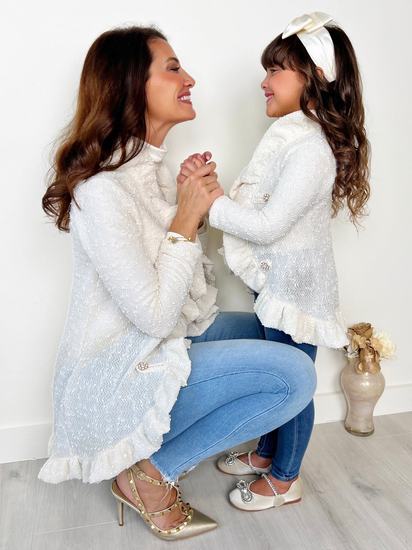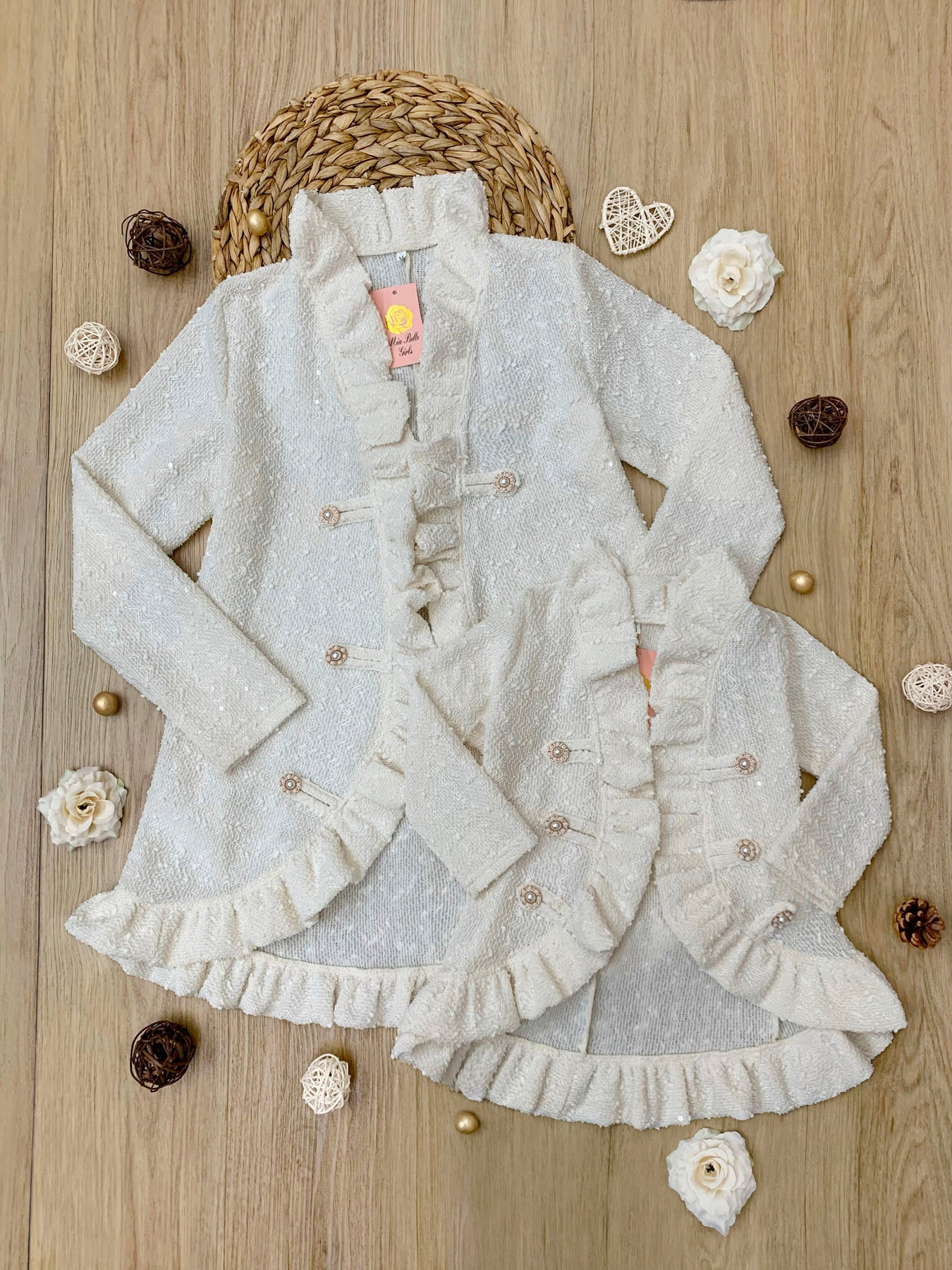 Mommy and Me Classy Duo Ivory Blazer Ruffle Cardigan