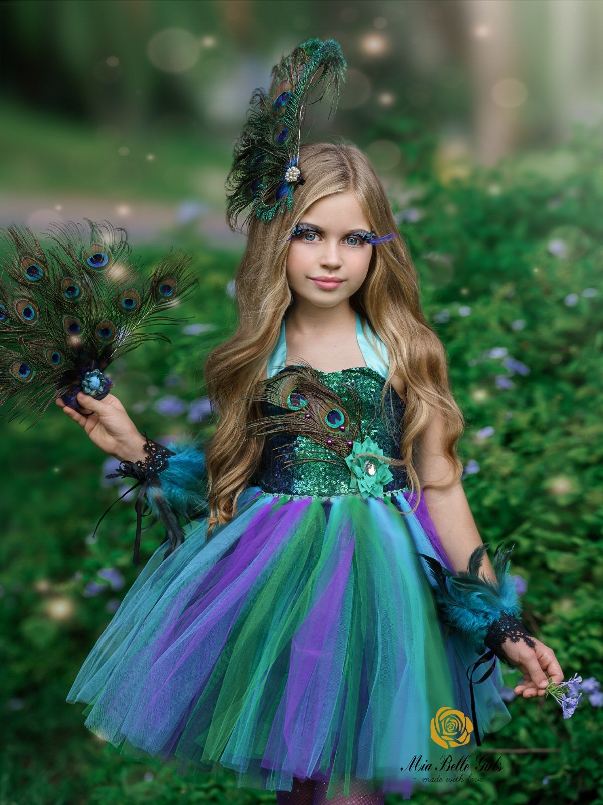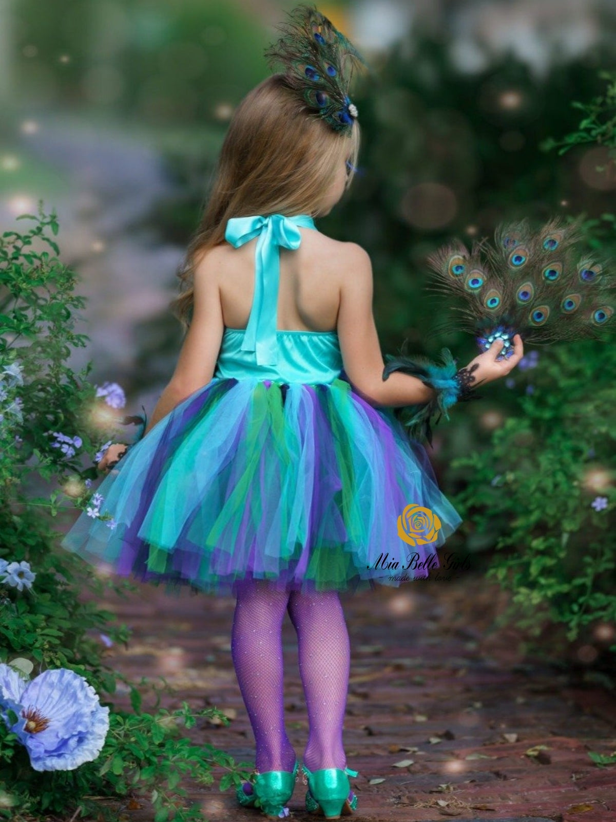 Girls Halloween Costumes | Peacock Fairy Tutu Dress - Mia Belle Girls