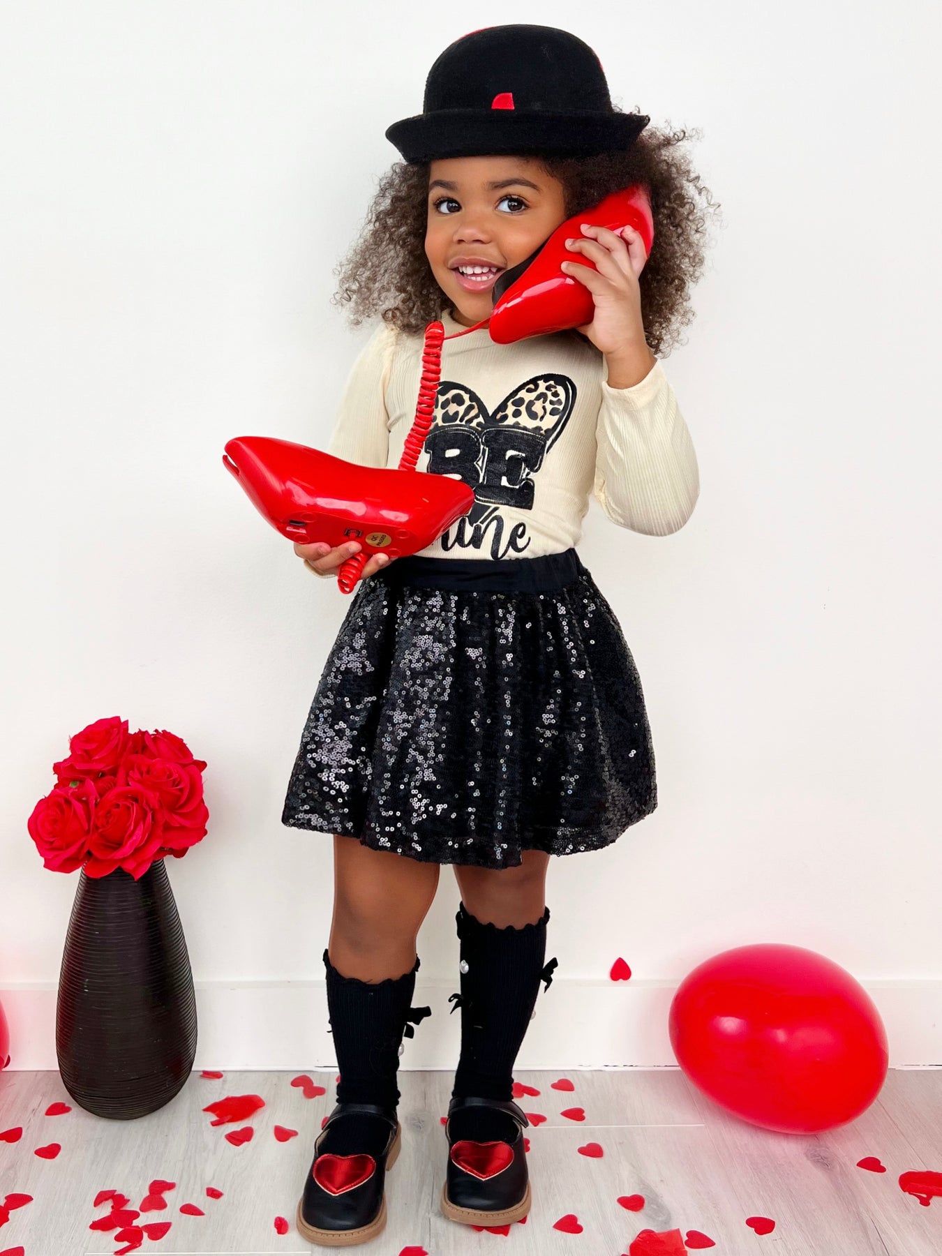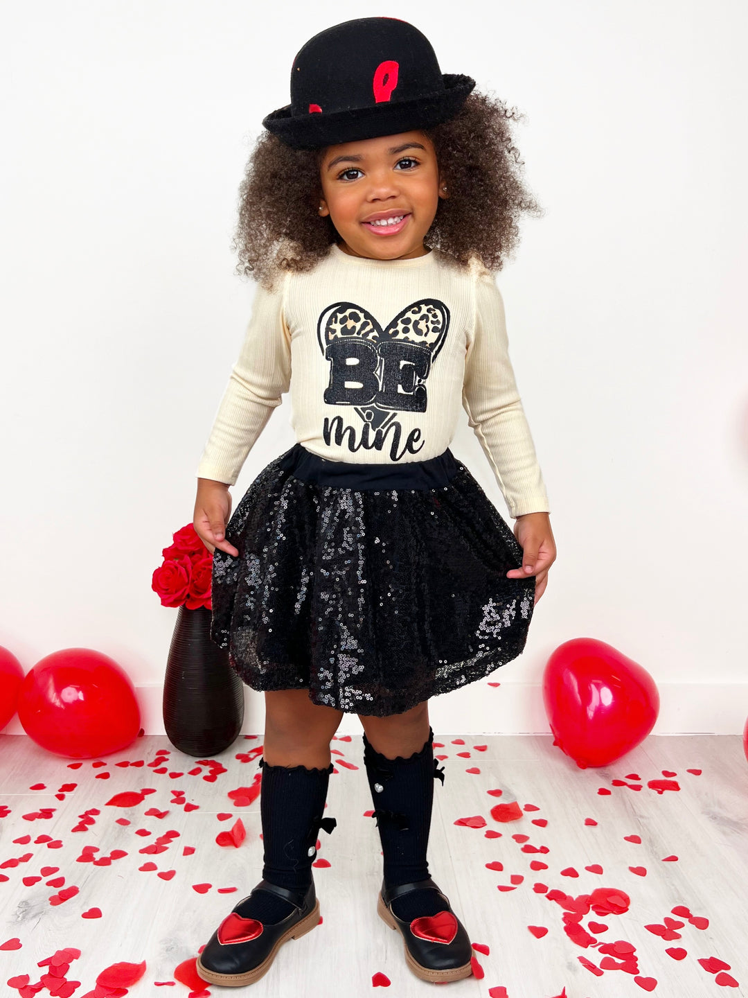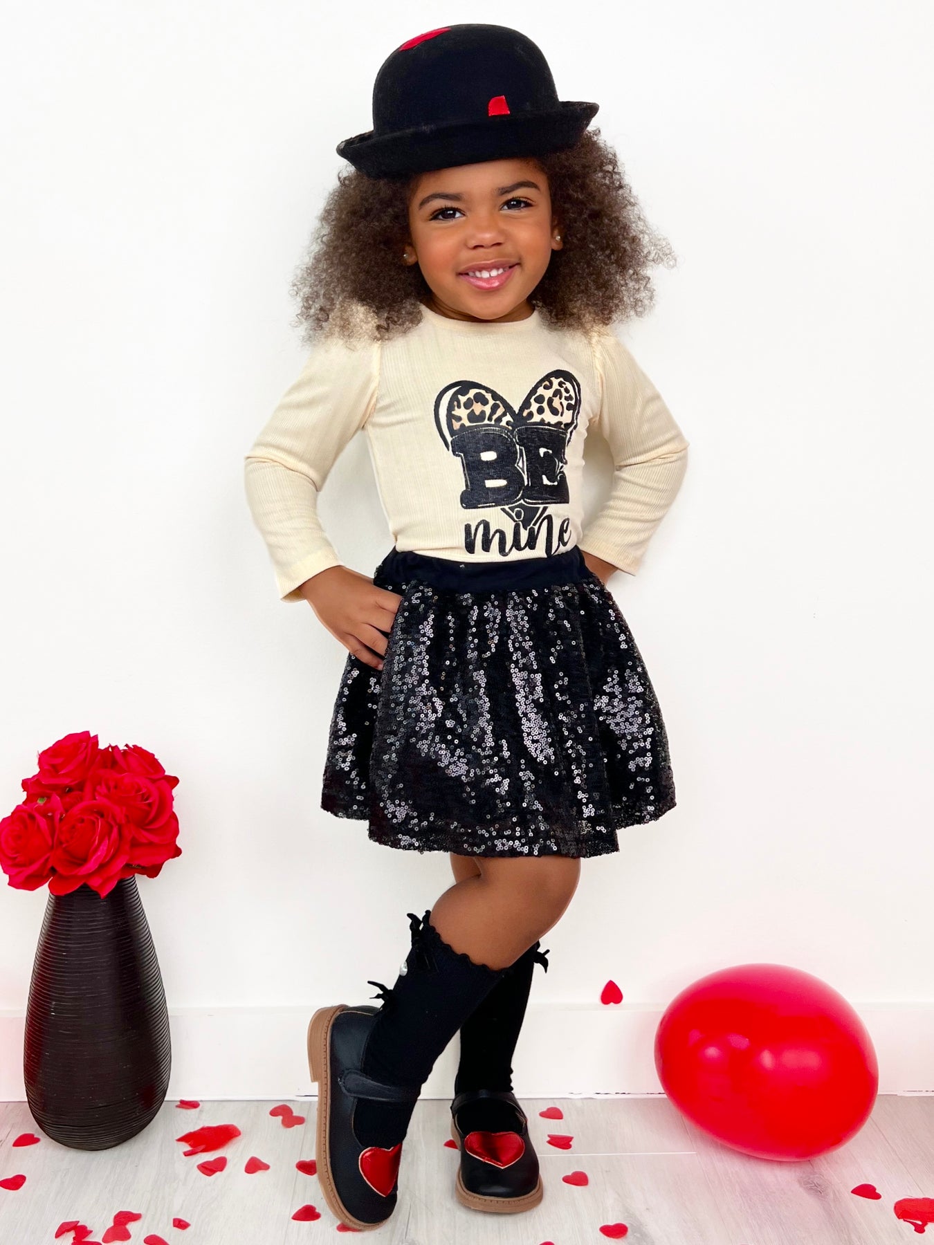 Girls Valentine's Clothes | Girls Be Mine Top & Black Sequin Skirt Set