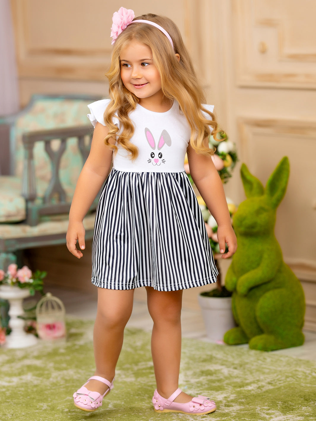 • Style your darling diva to look her cutest in this striped Easter Bunny dress that flaunts fabulous vibes and chic stripes. Incredibly soft and lightweight material makes it fun to twirl, skip, and play with comfort and confidence.