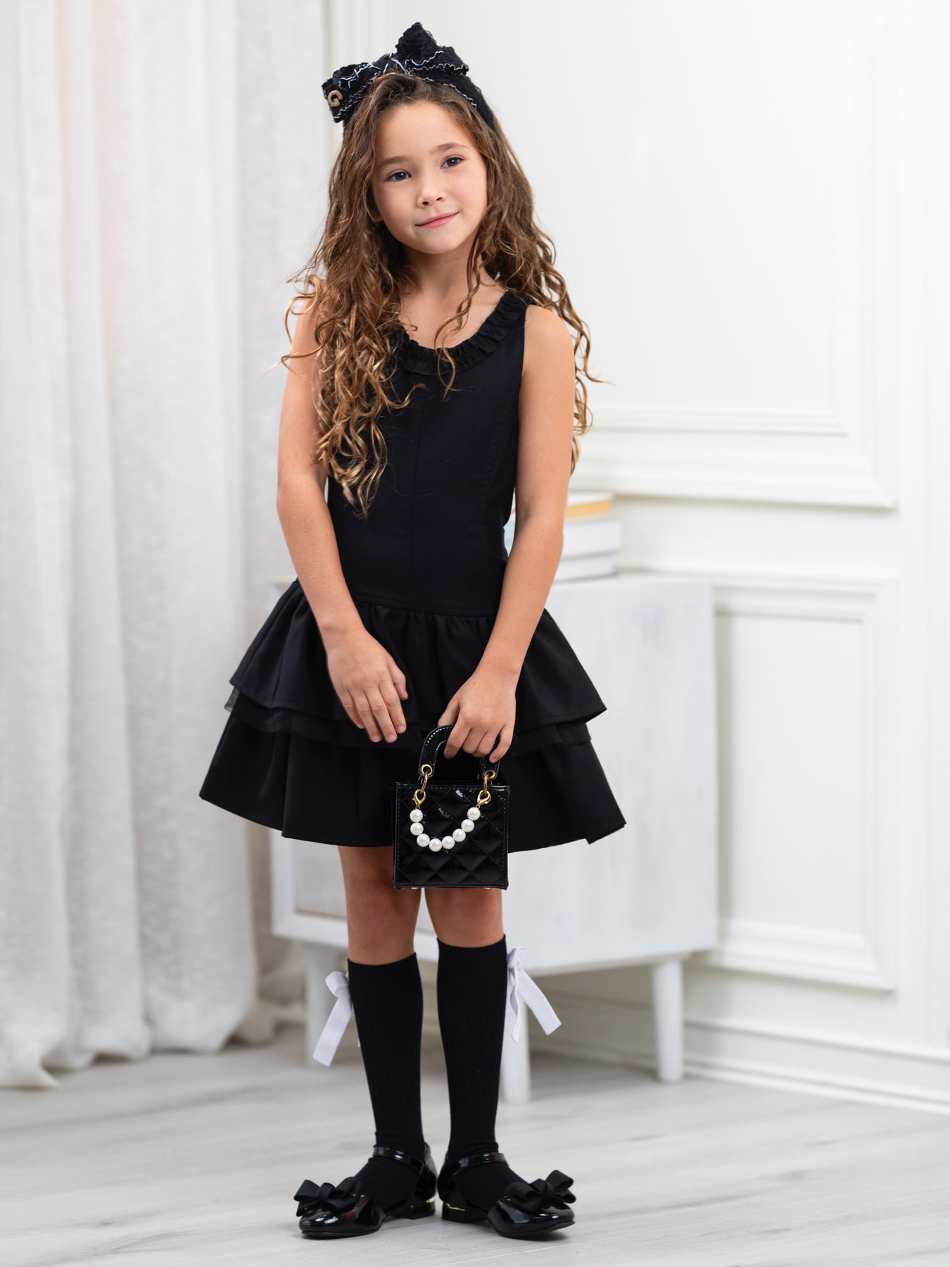 Black Bow Tiered Ruffle Dress by Kids Couture