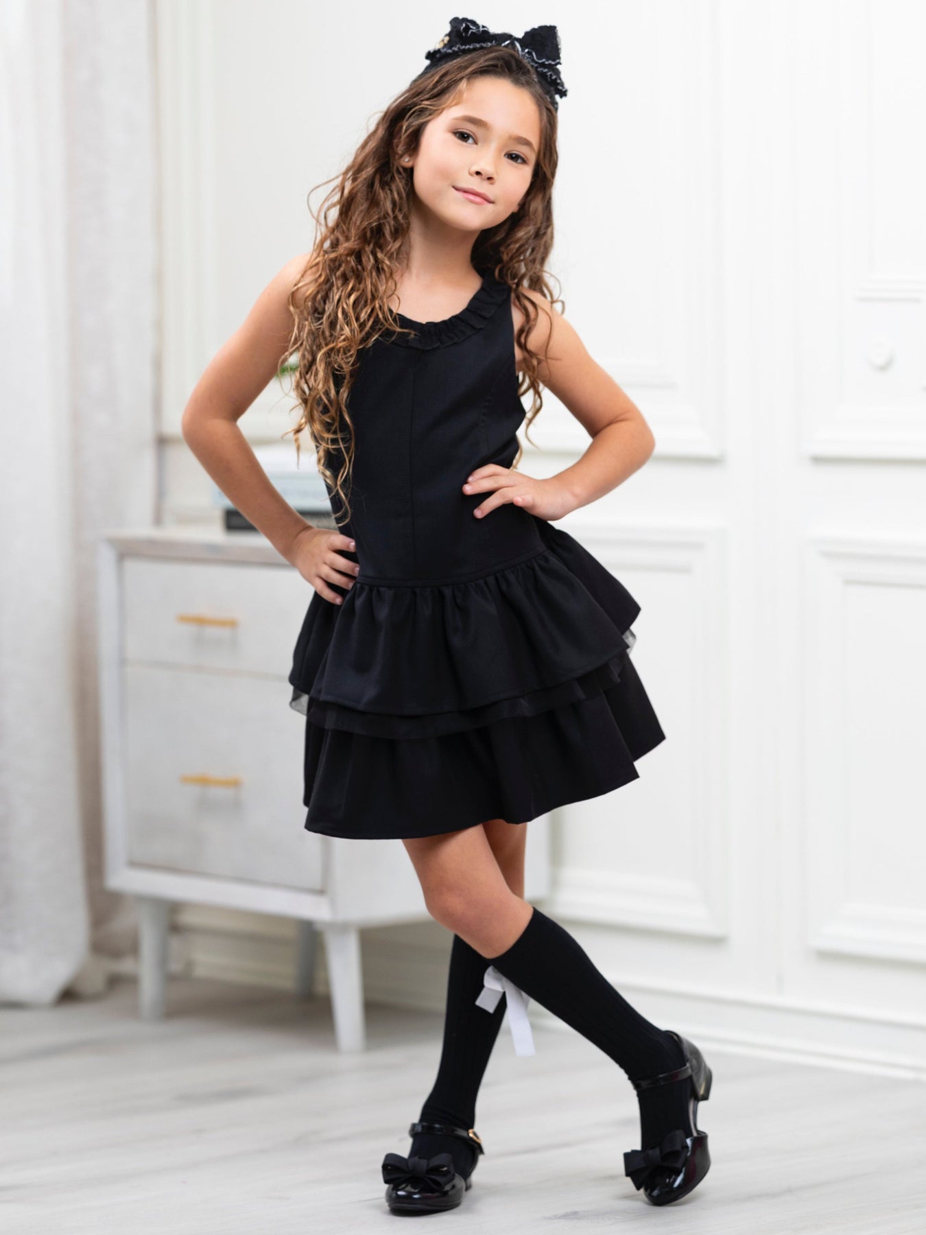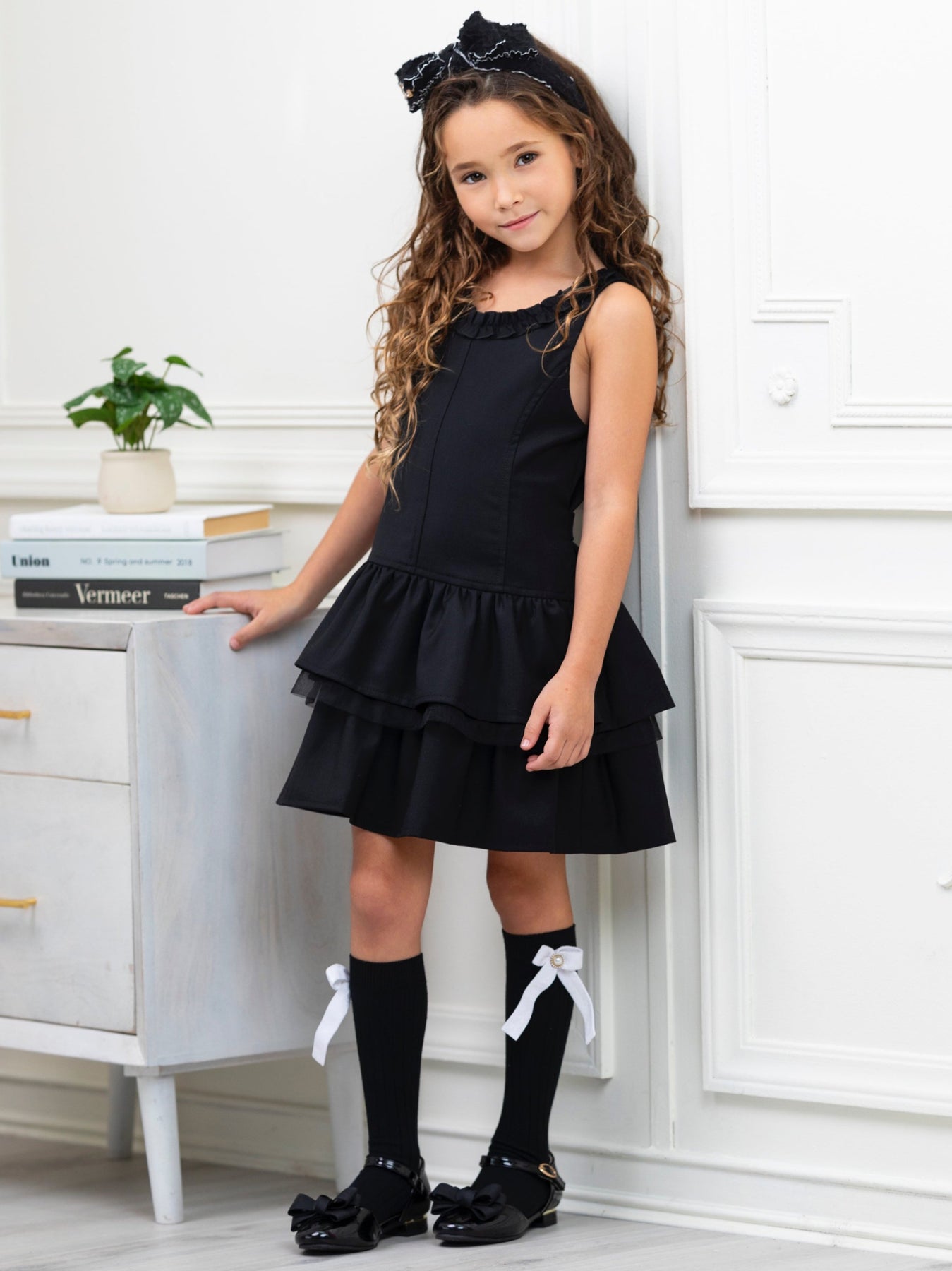 Elegant black tiered girls uniform dress perfect for back to school and formal events