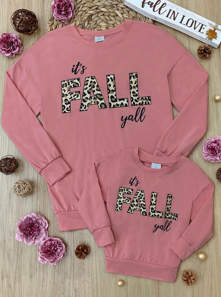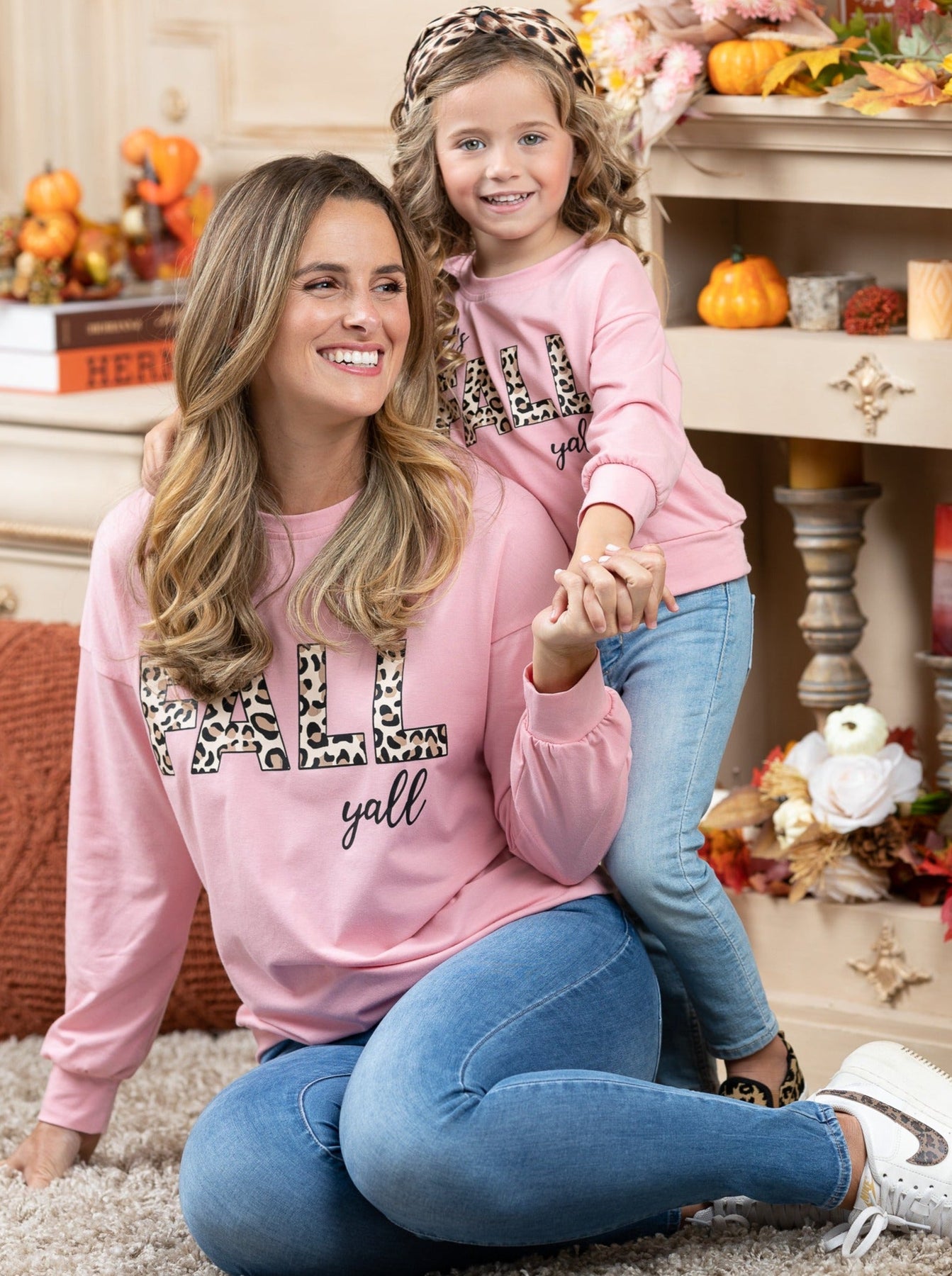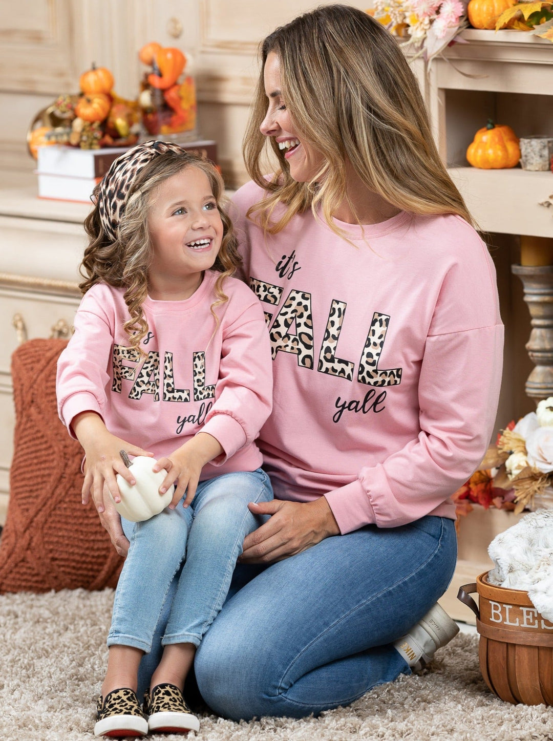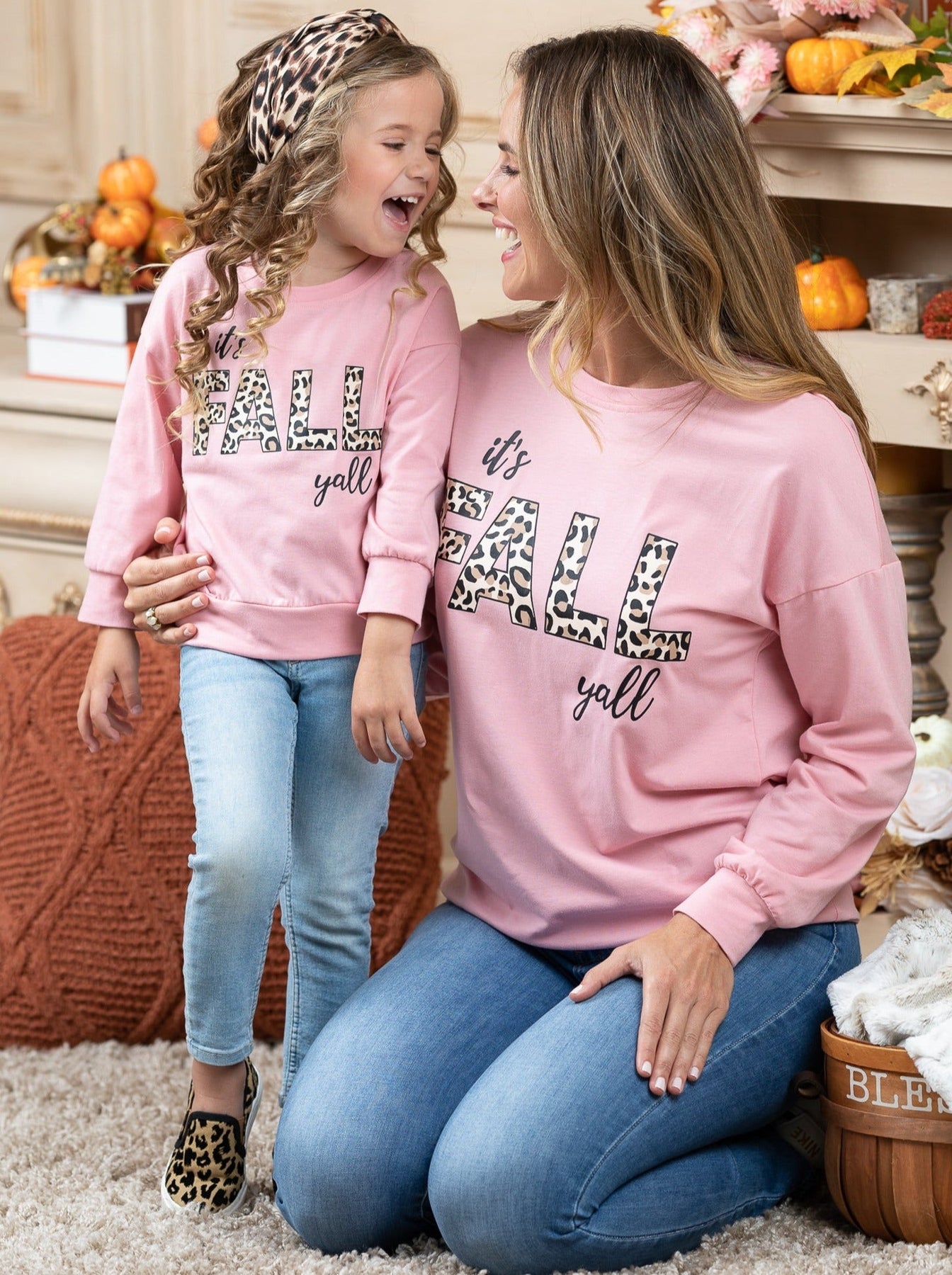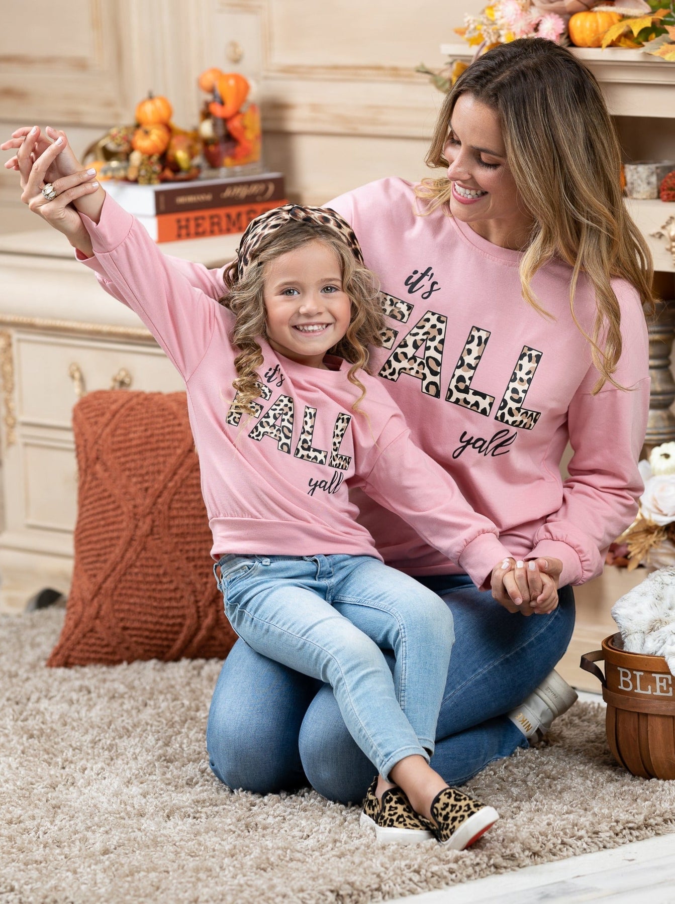 - Y'all know what time it is! Share fierce fall vibes with your little girl in matching pullover tops. Soft to the touch and the perfect mix of pink fabric and leopard print graphics.