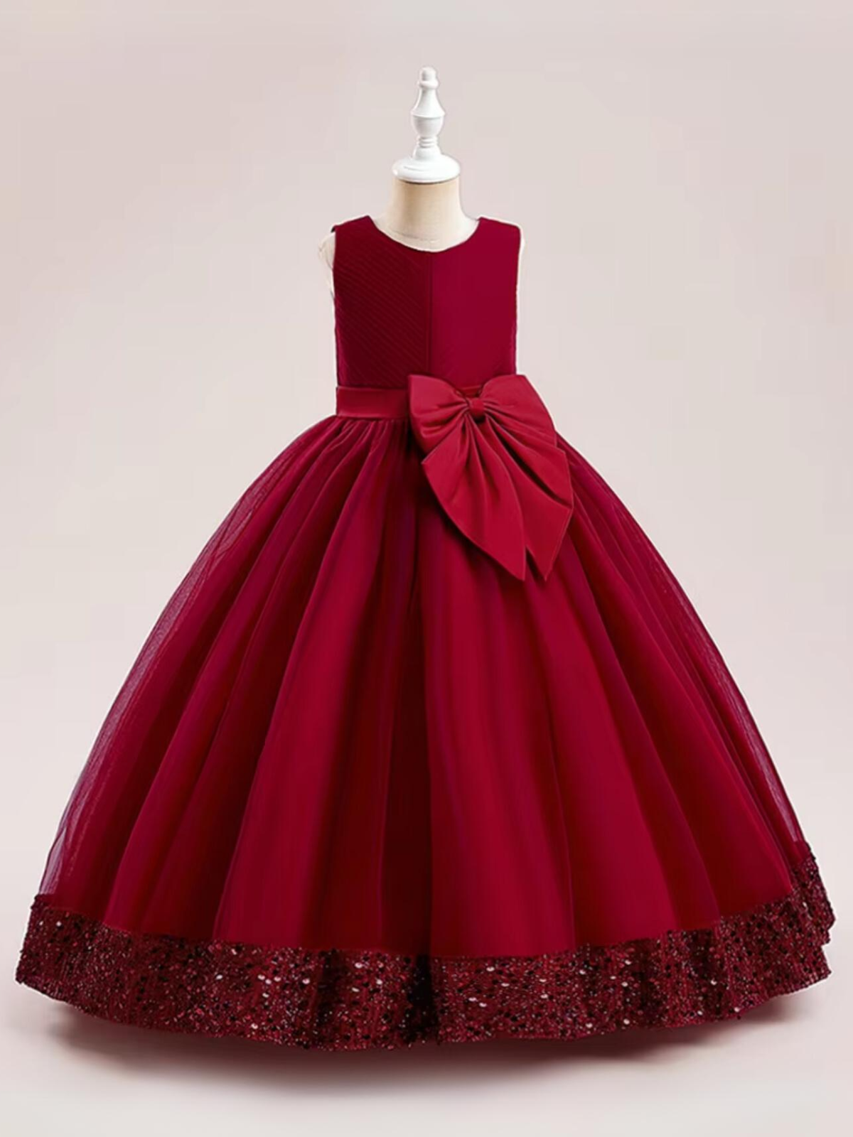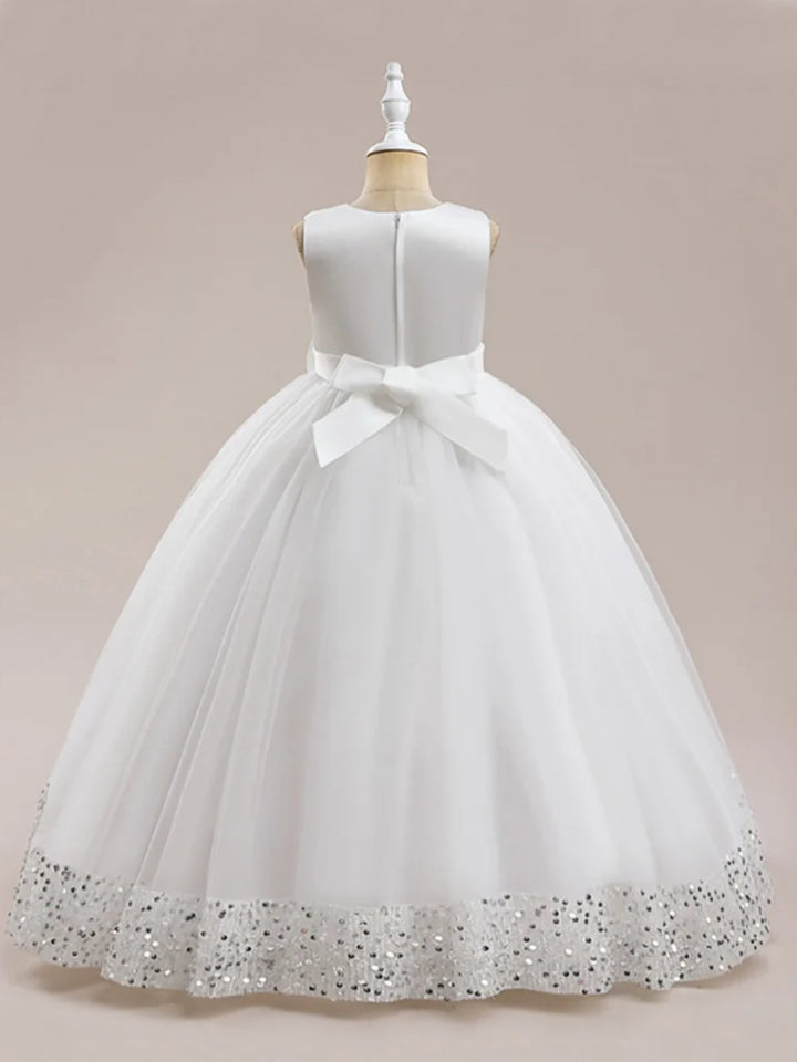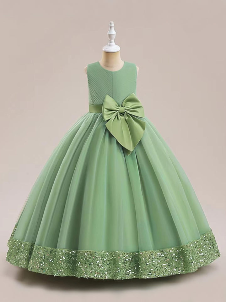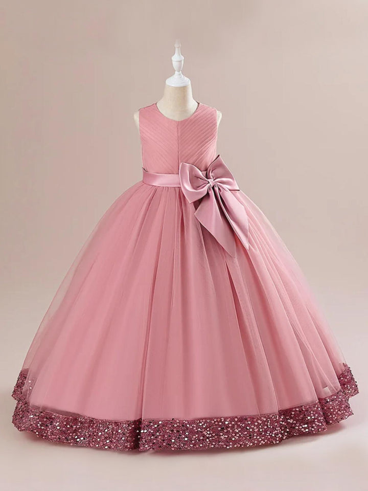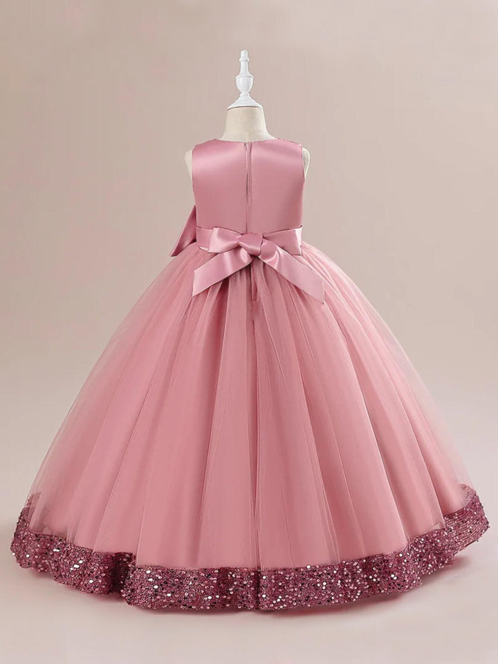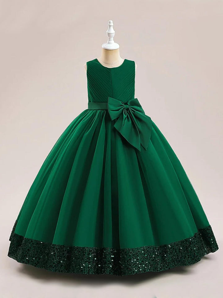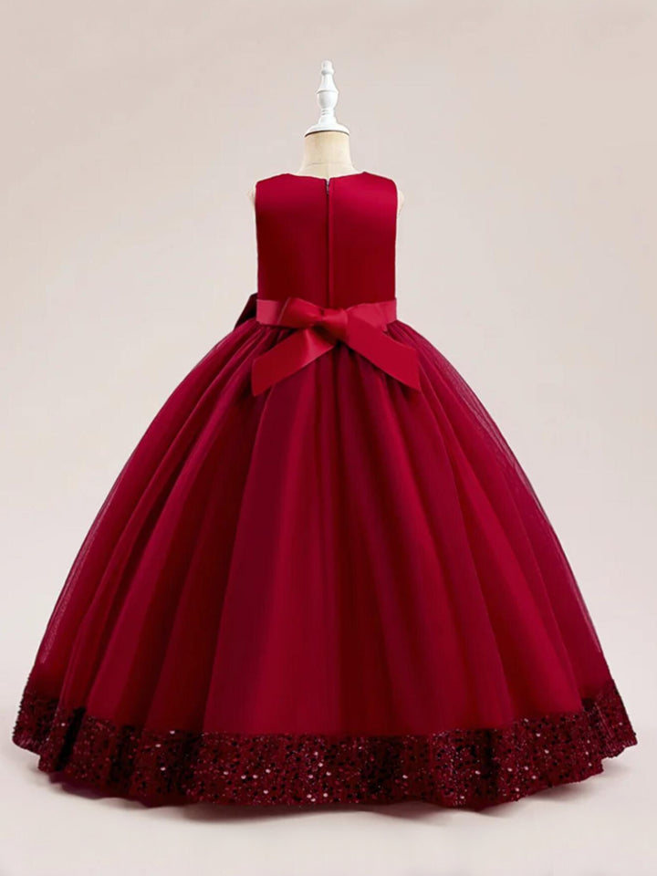 • The gown features a shimmering sequin hem that adds a touch of sparkle, perfect for making your little girl shine bright during the festive season.