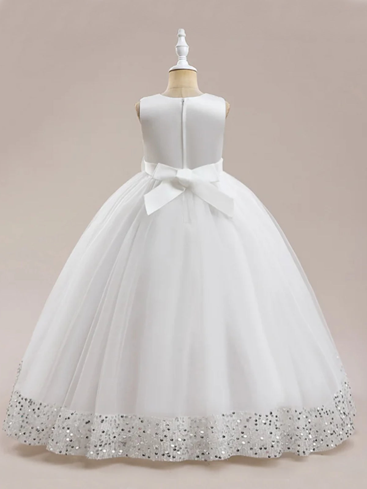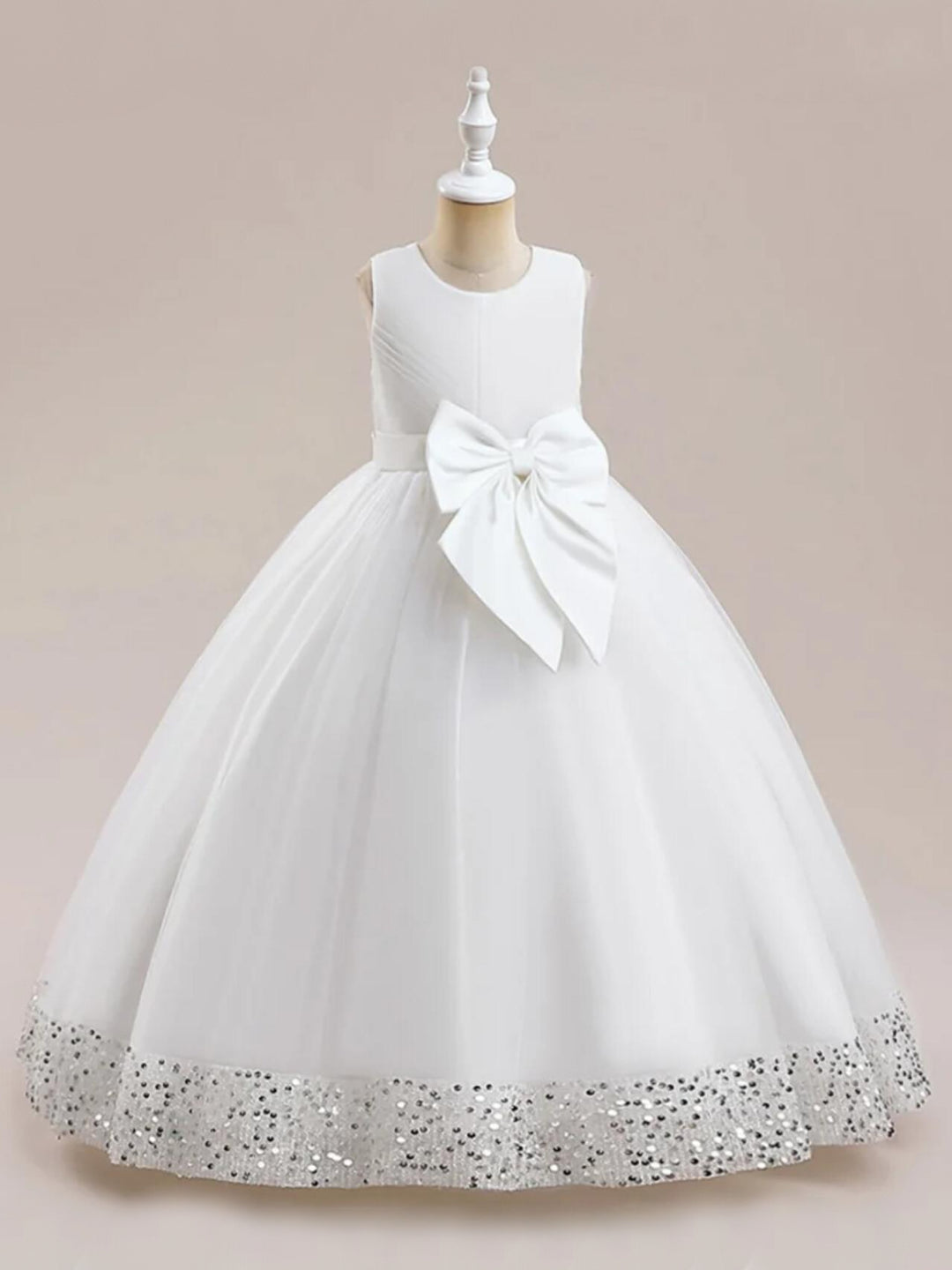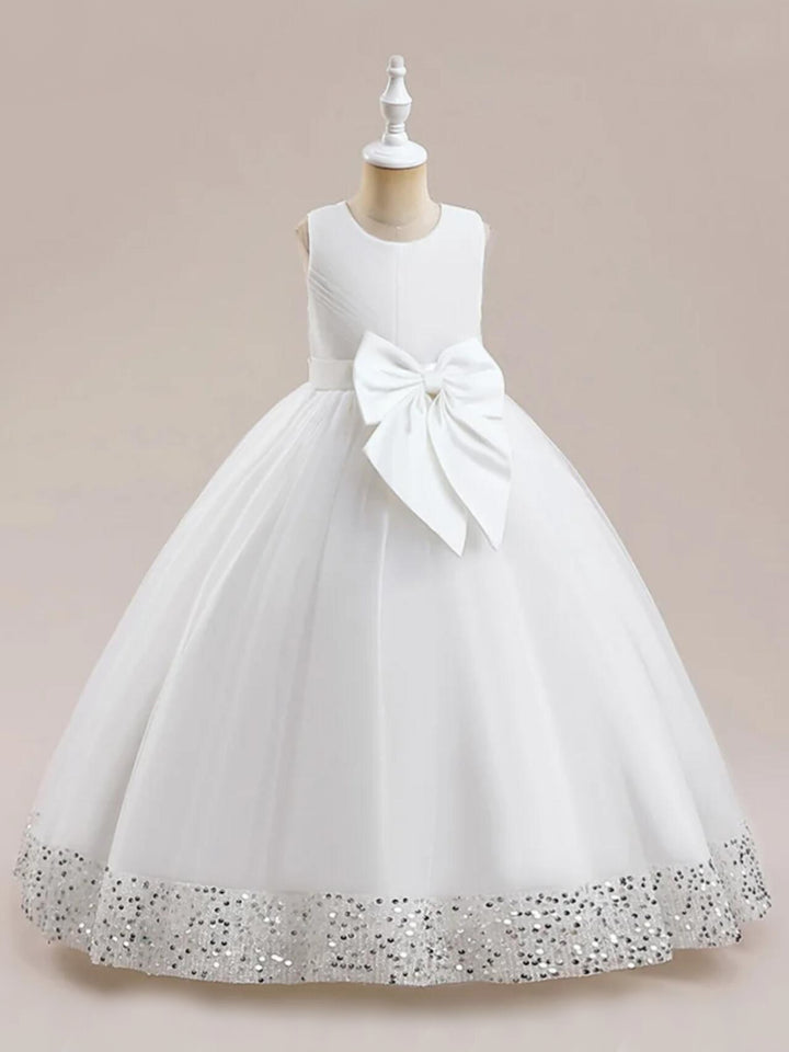 • Make this holiday season extra special with our  Sequin Ball Gown with Bow Accent .