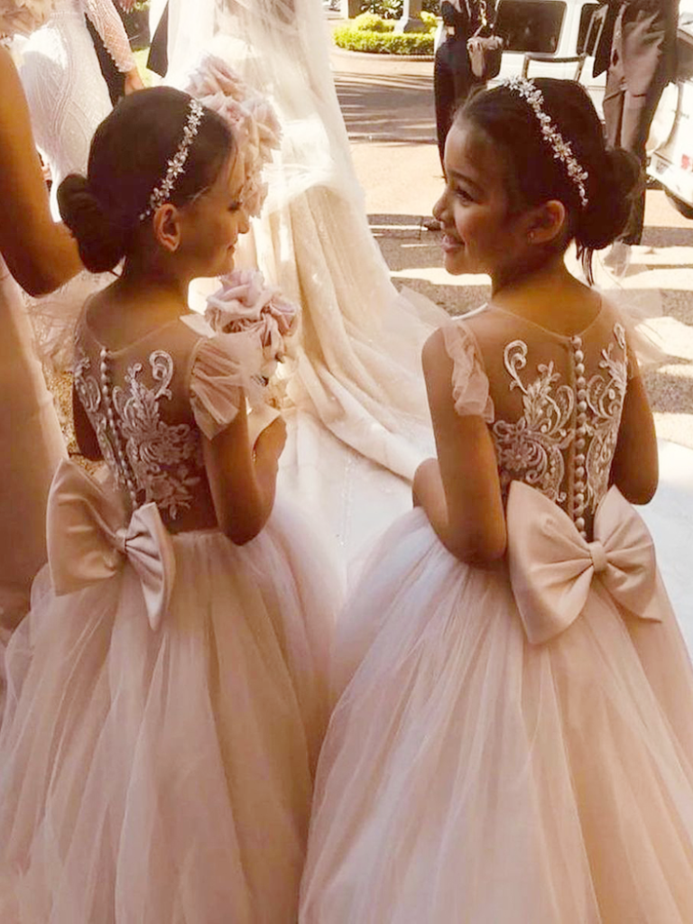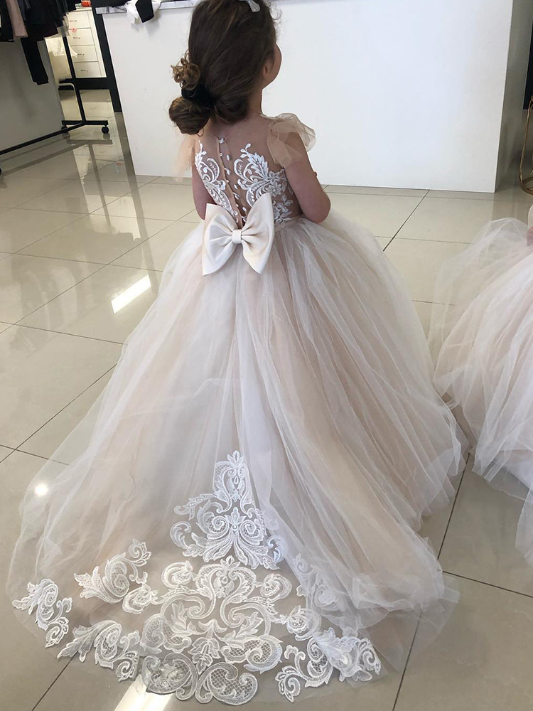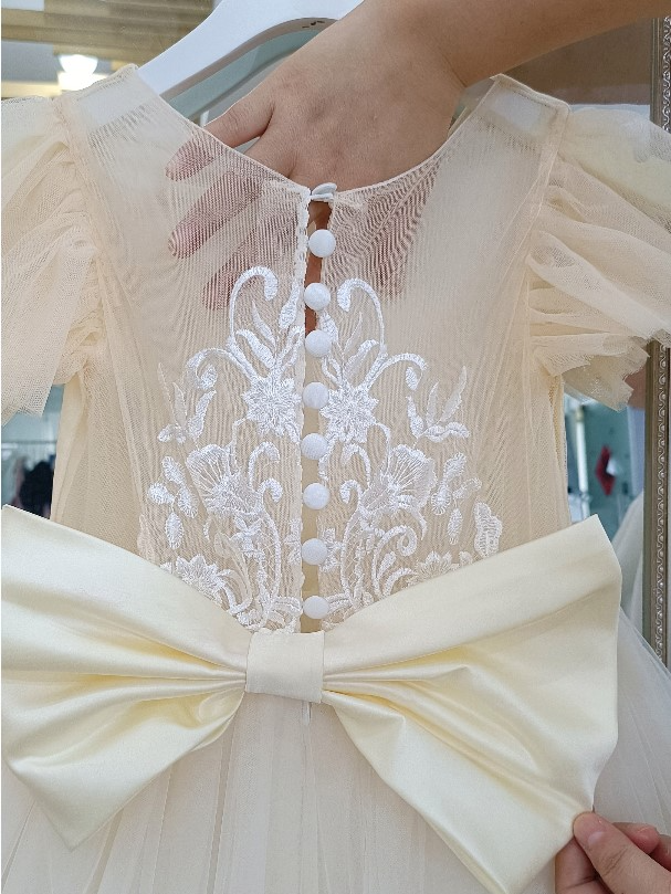 • This elegant gown is what dreams are made of. It has short sleeves and a fully embroidered bodice that is simply gorgeous! It has layers of tulle for a fuller skirt. It's perfect for any special occasion. Wear it for weddings, birthday galas, father-daughter dances, or any event you want her to dazzle. For a more voluminous skirt wear a petticoat underneath.