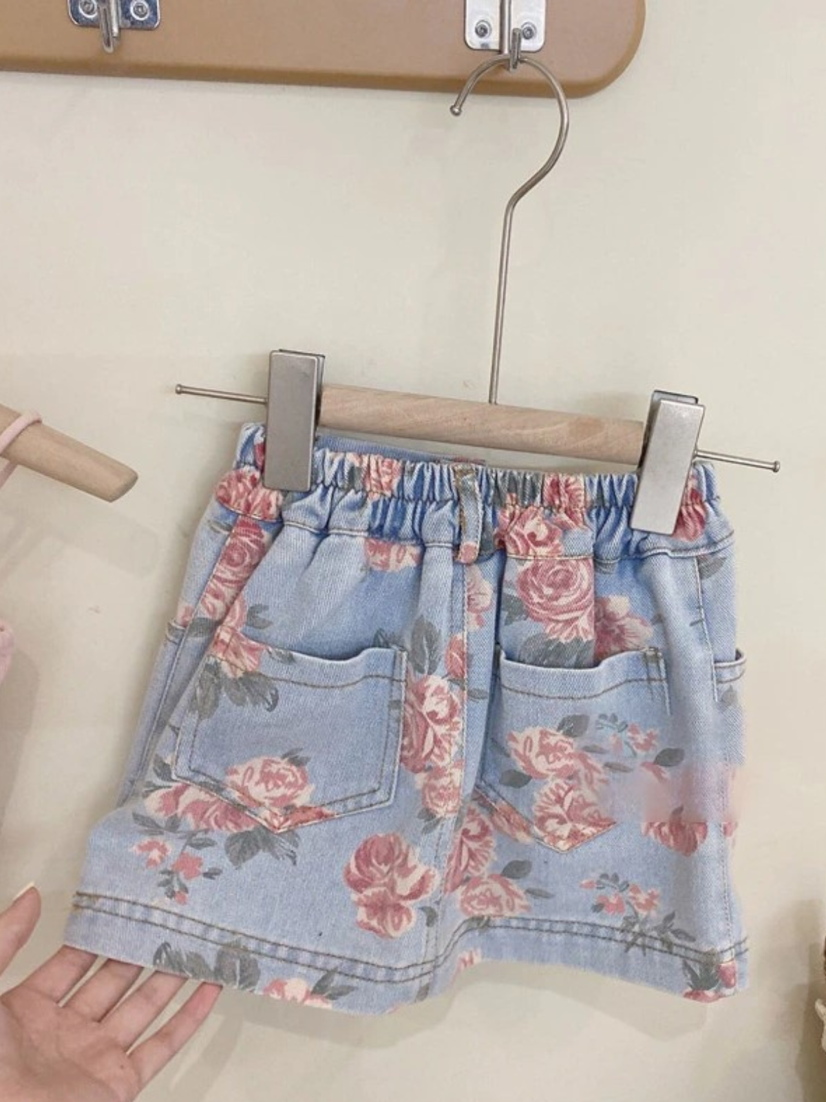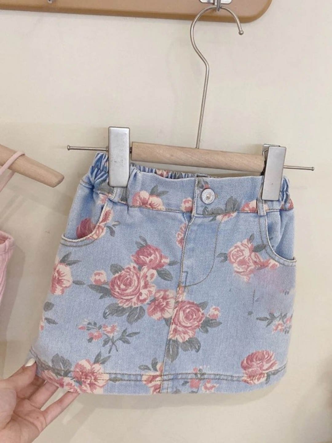 - Your little girl deserves the cutest wardobe this season. Our crop top and floral denim skirt set delivers maximum cuteness with its pretty color mix and adorable details. Makes regular days more memorable!