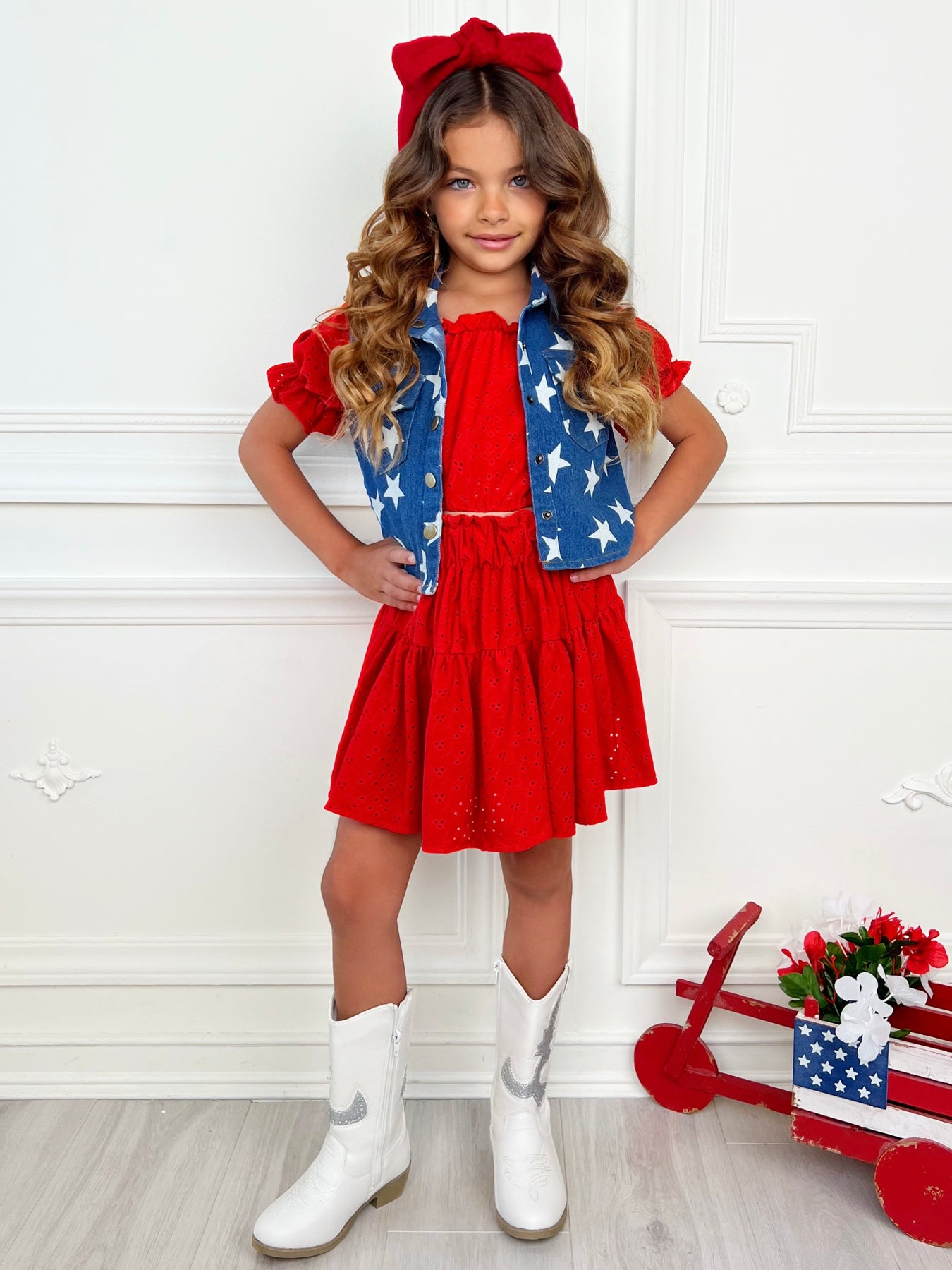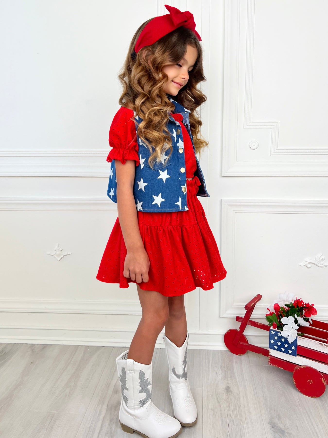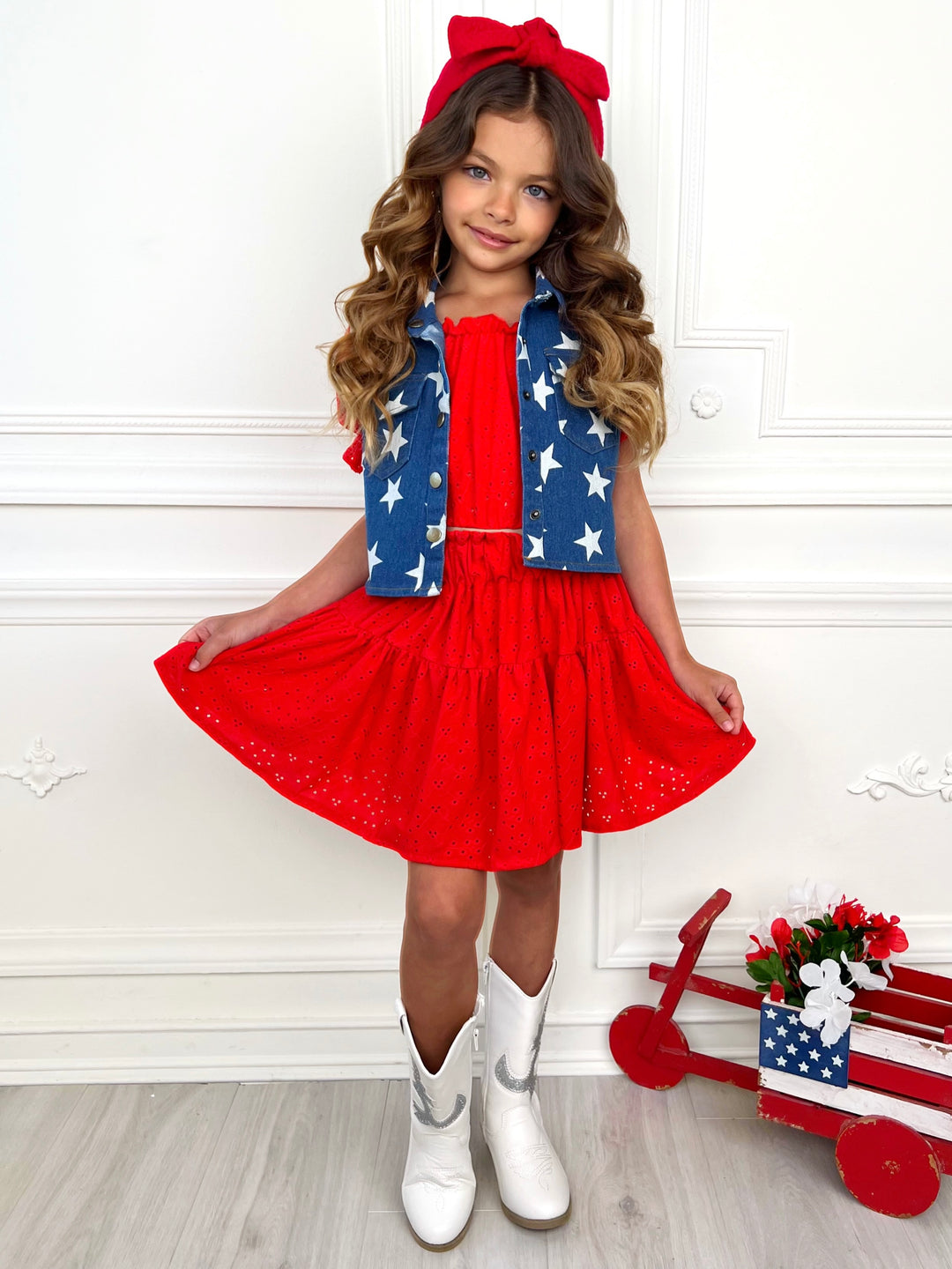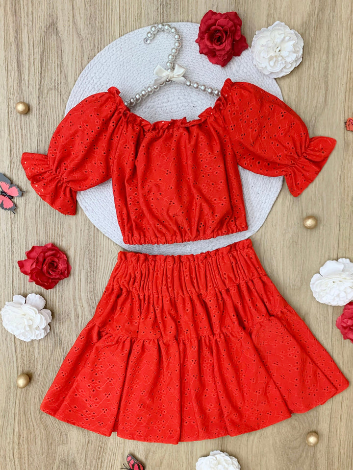 - Turn heads in this stunning red eyelet 2-piece set, inspired by the romance and elegance of Paris in springtime.