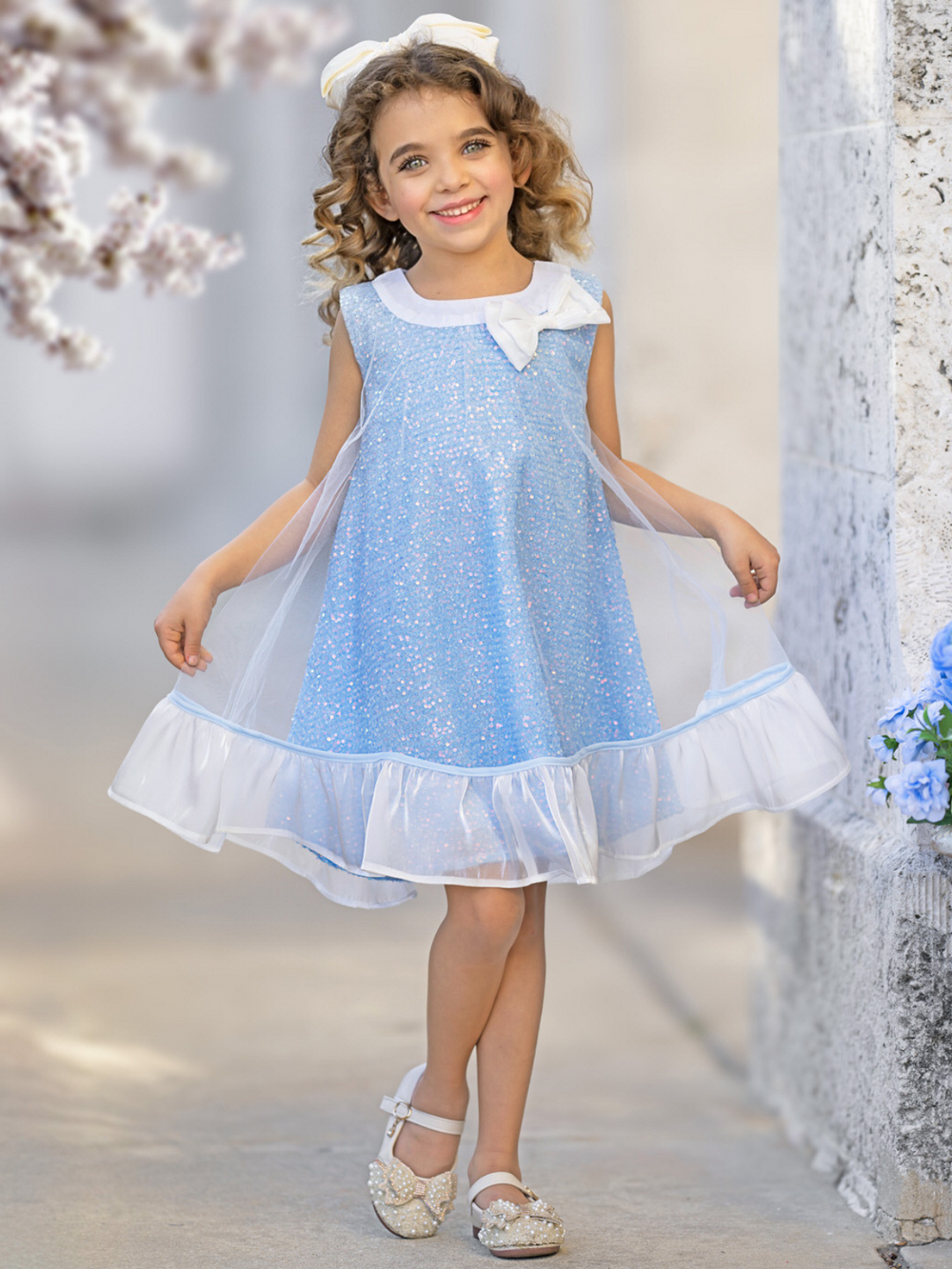 Sparkly Blue Bow Sequin Ruffle Dress