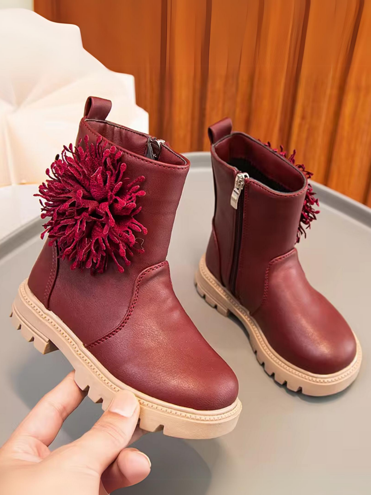 Girls Cute Non-slip Boots with Flower and Side Zipper By Liv and Mia