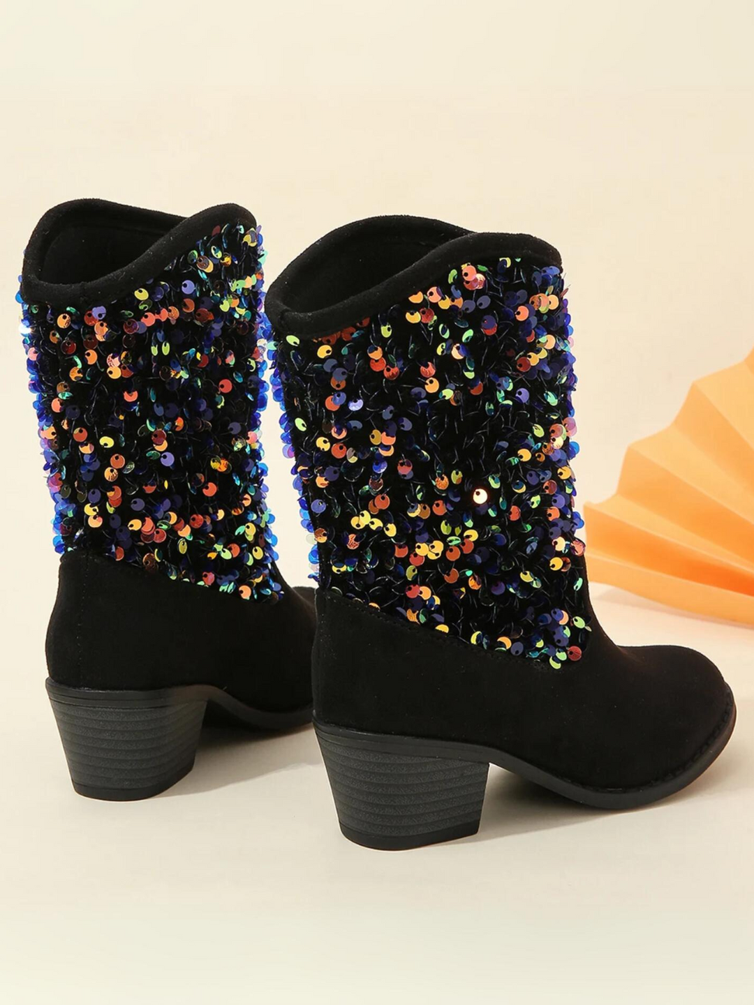 - These Girls Sequined Elegant Unique Boots By Liv and Mia feature eye-catching sequins that make a bold fashion statement.