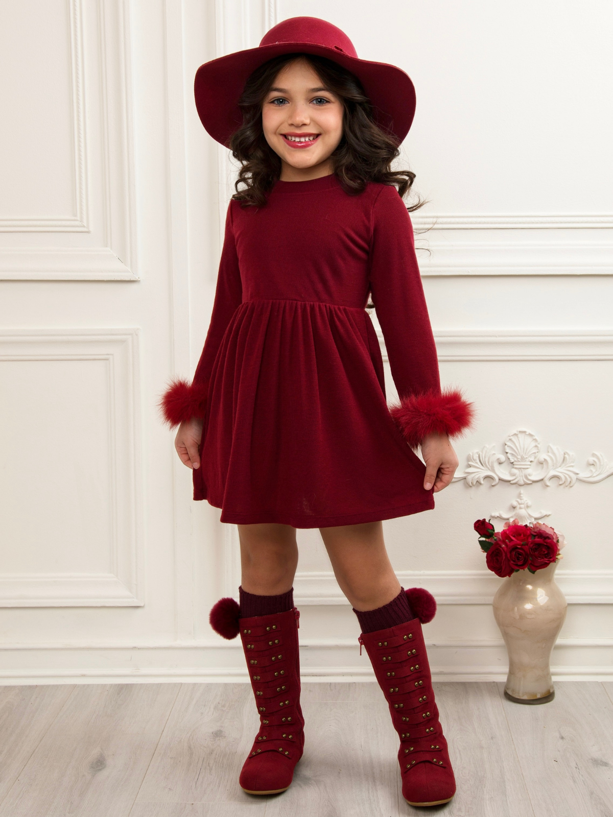 Cranberry Frost Burgundy Dress with Luxe Faux Fur Cuffs