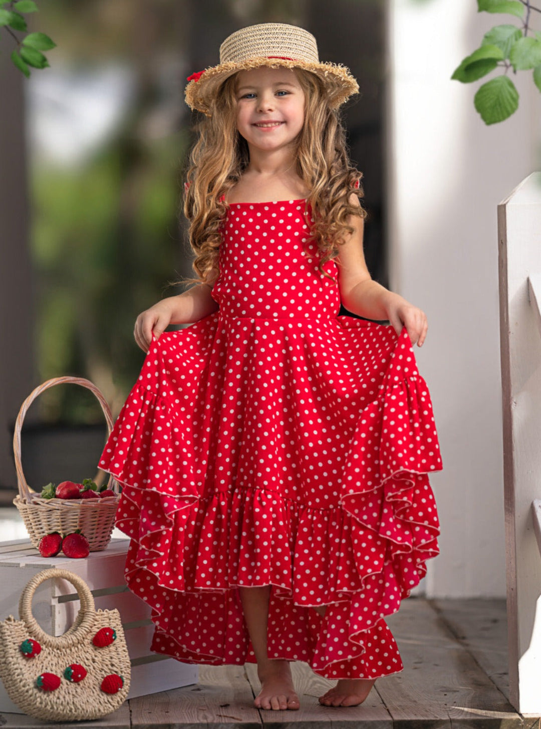 Mia Belle Girls Red Polka Dot Hi-Lo Dress | Girls Spring Dresses