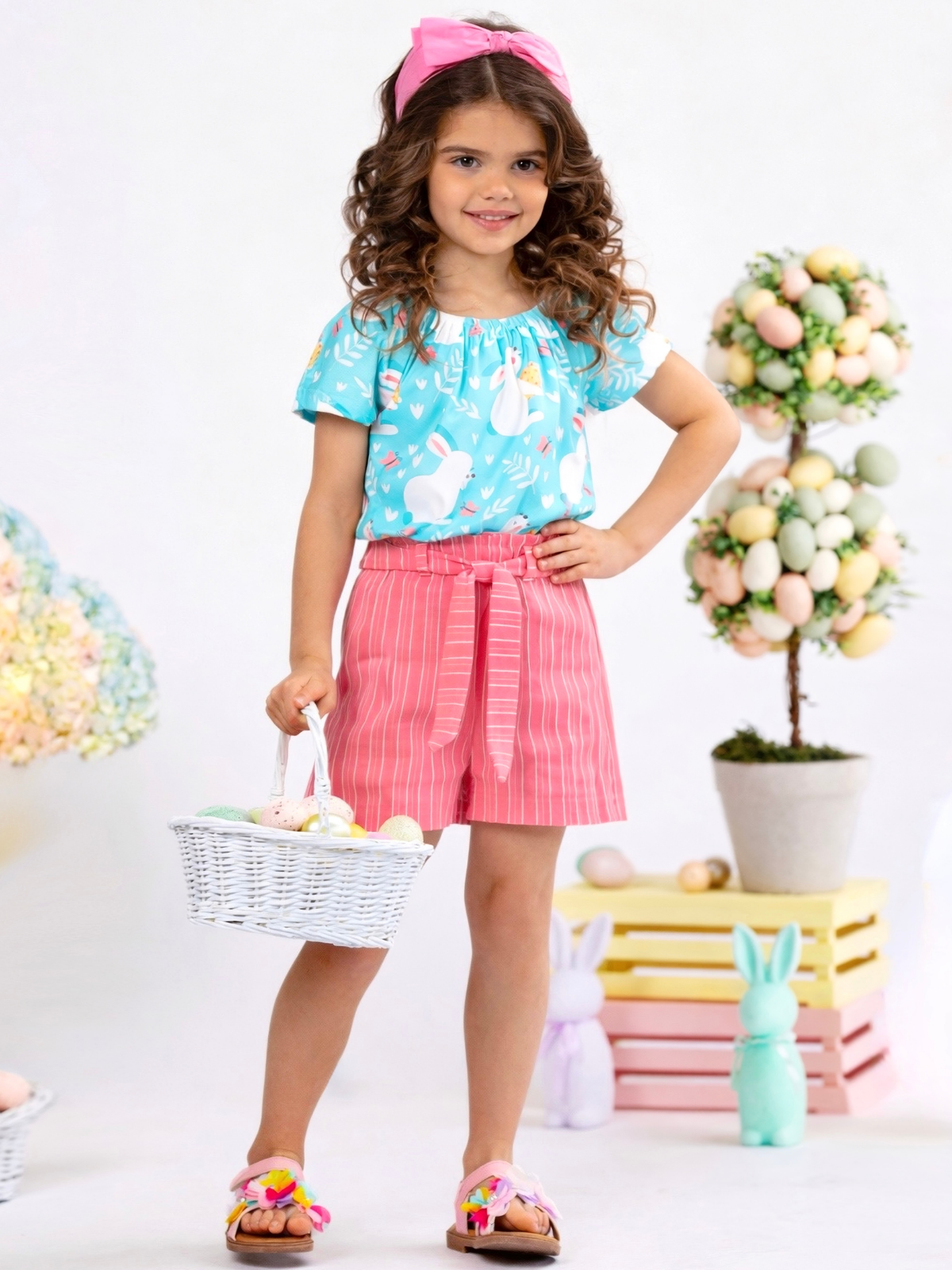 Celebrate Easter in colorful style with this adorable bunny Easter short set for girls, designed for comfort, movement, and springtime fun.
