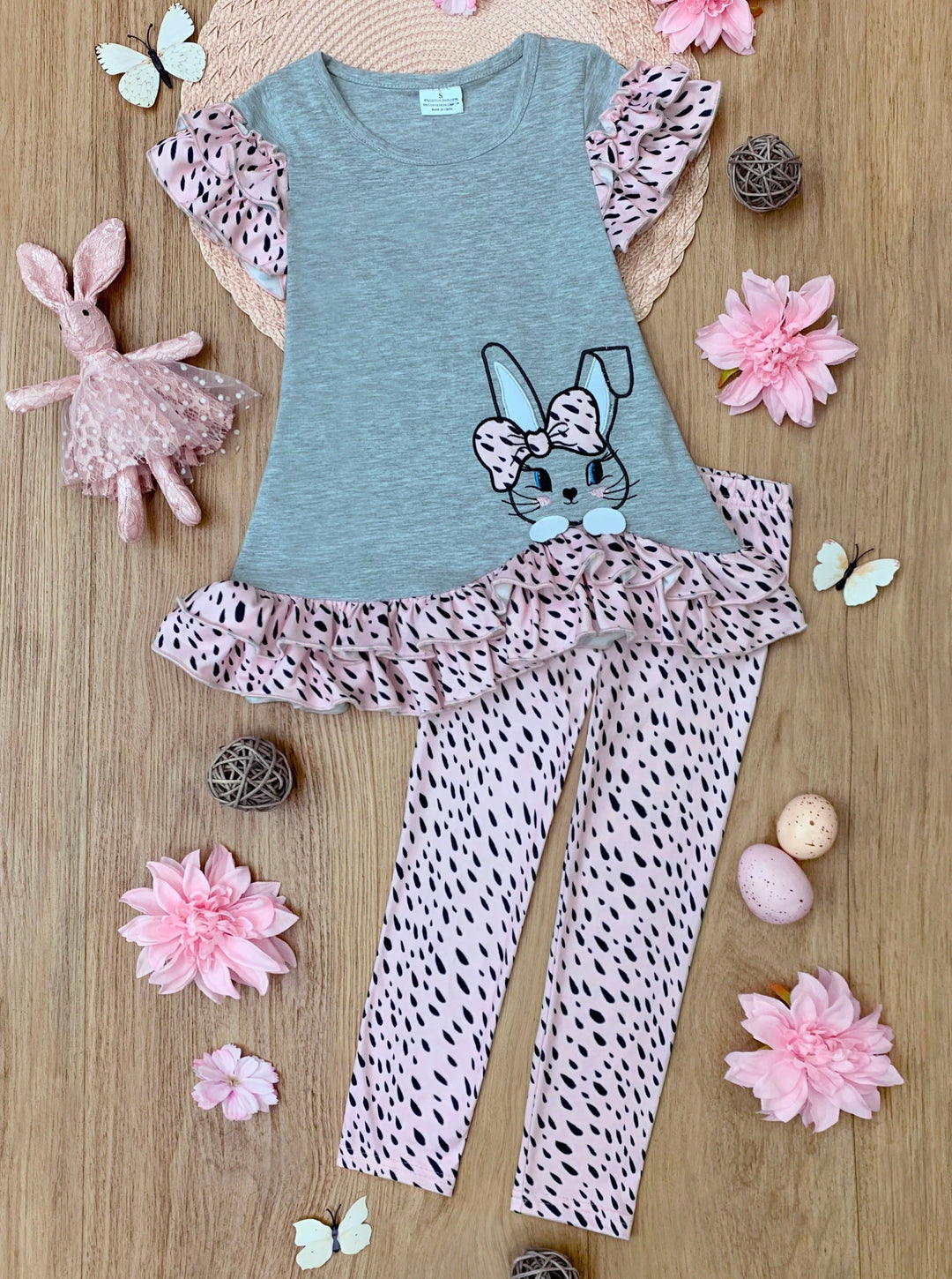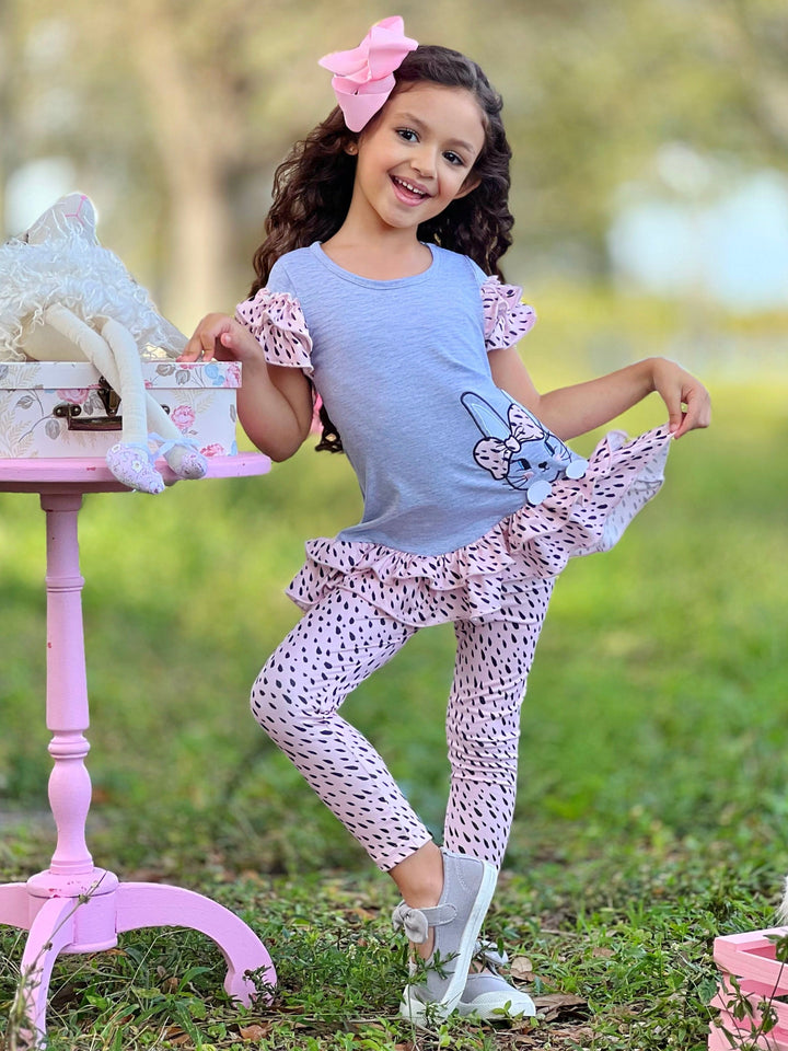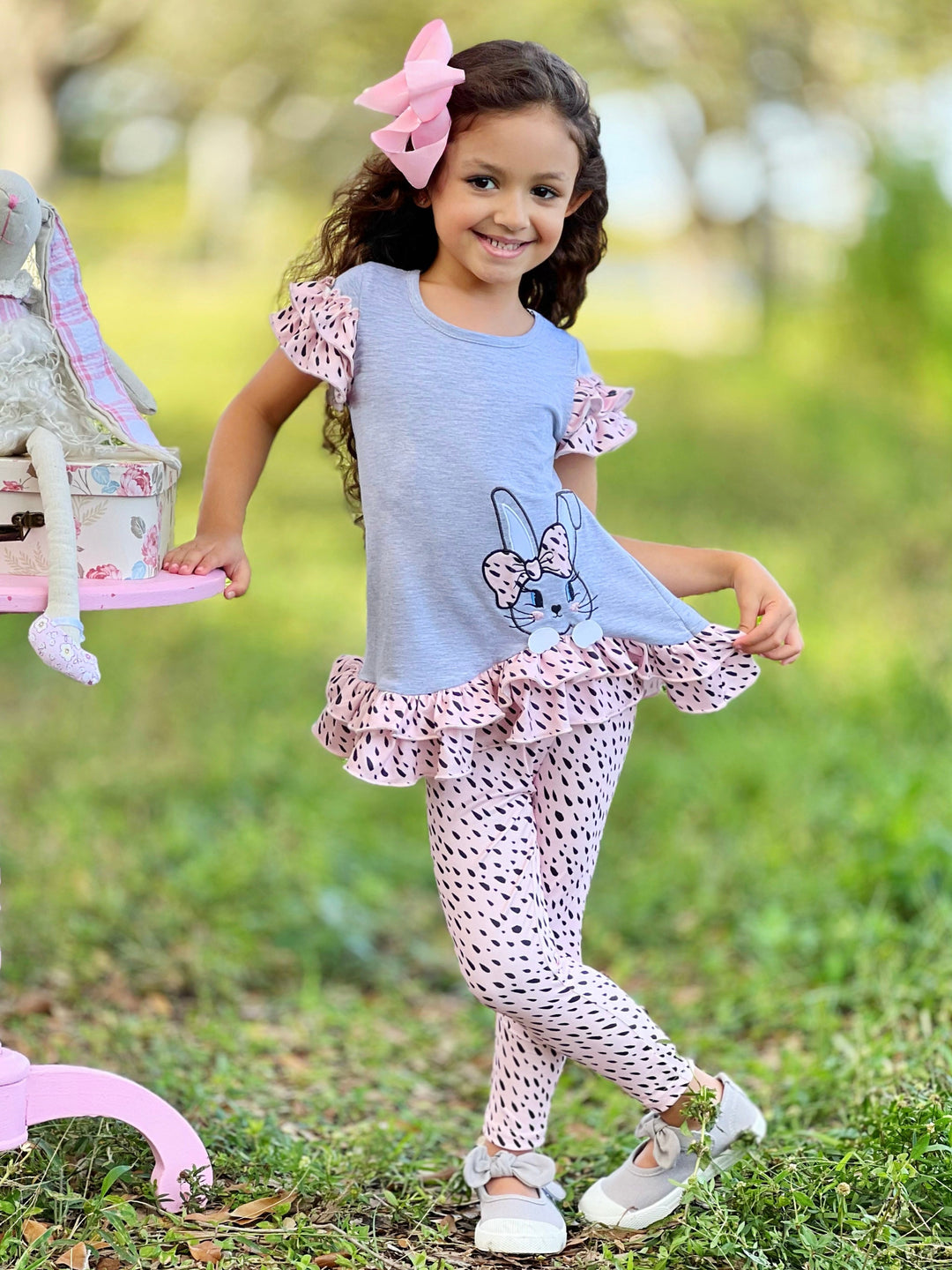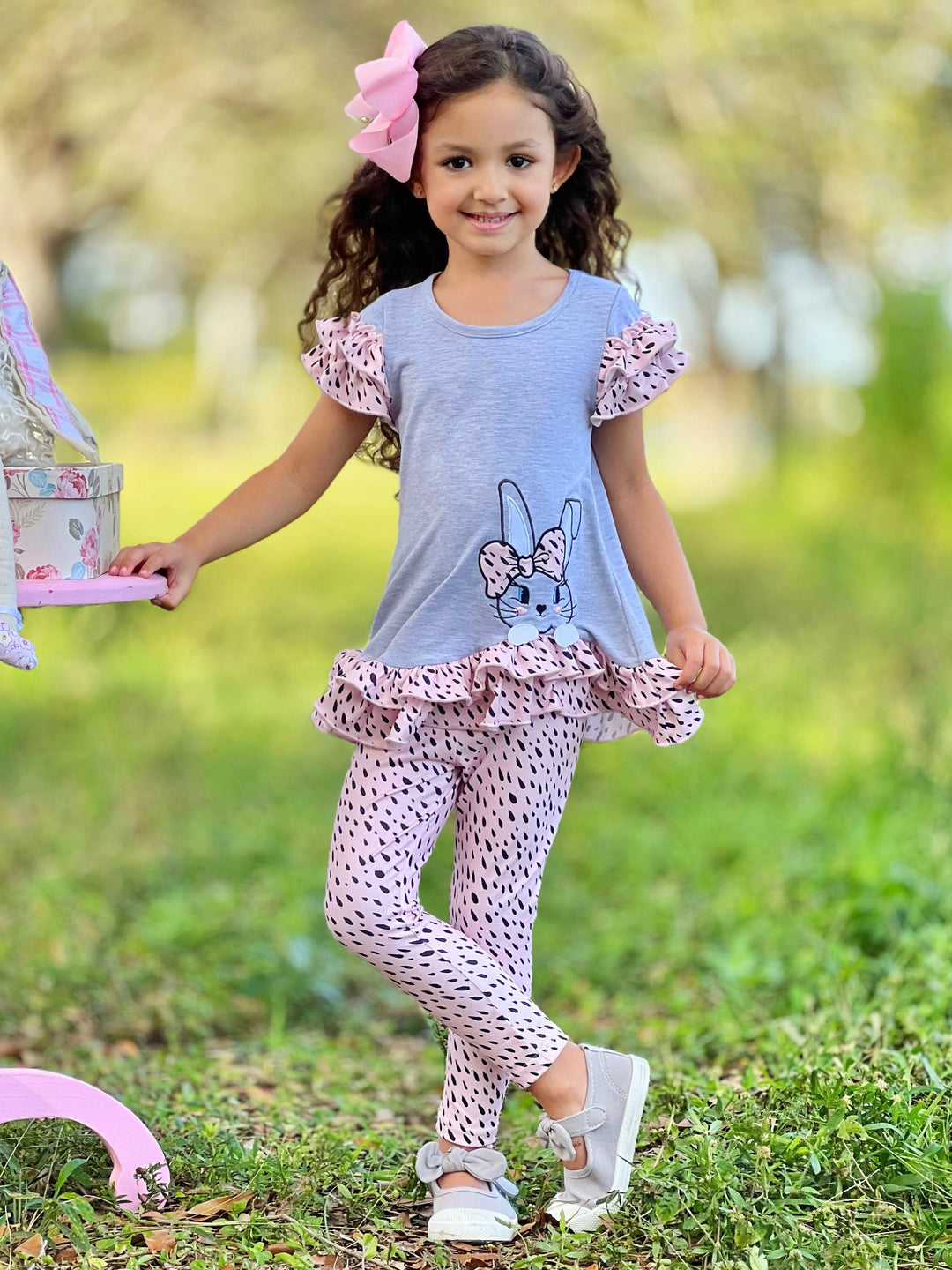 Mia Belle Girls Bunny Polka Dot Legging Set | Girls Easter Sets