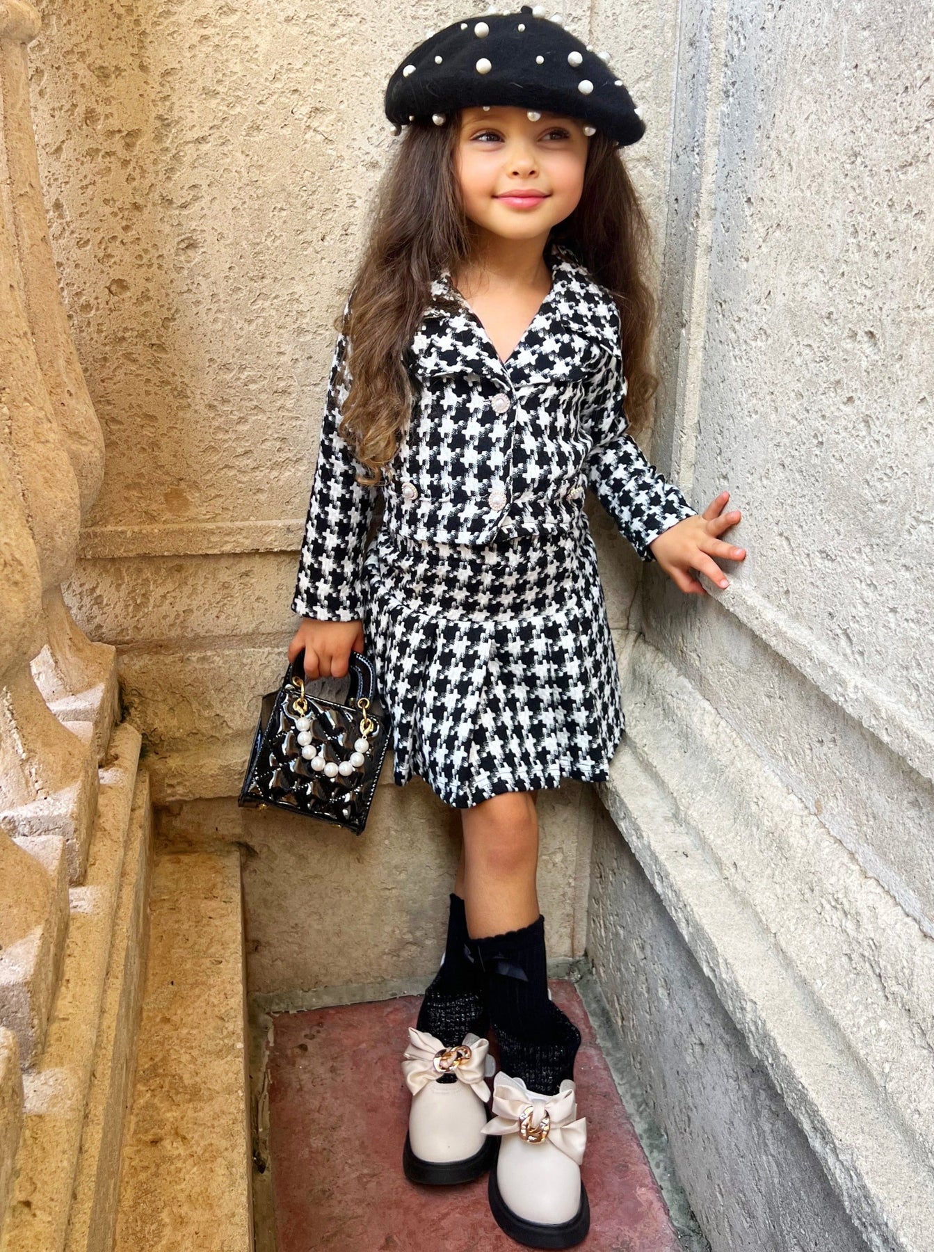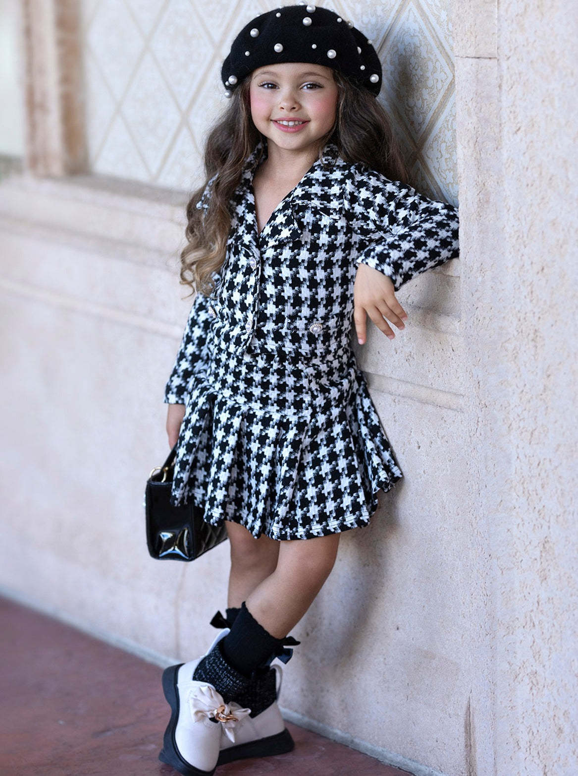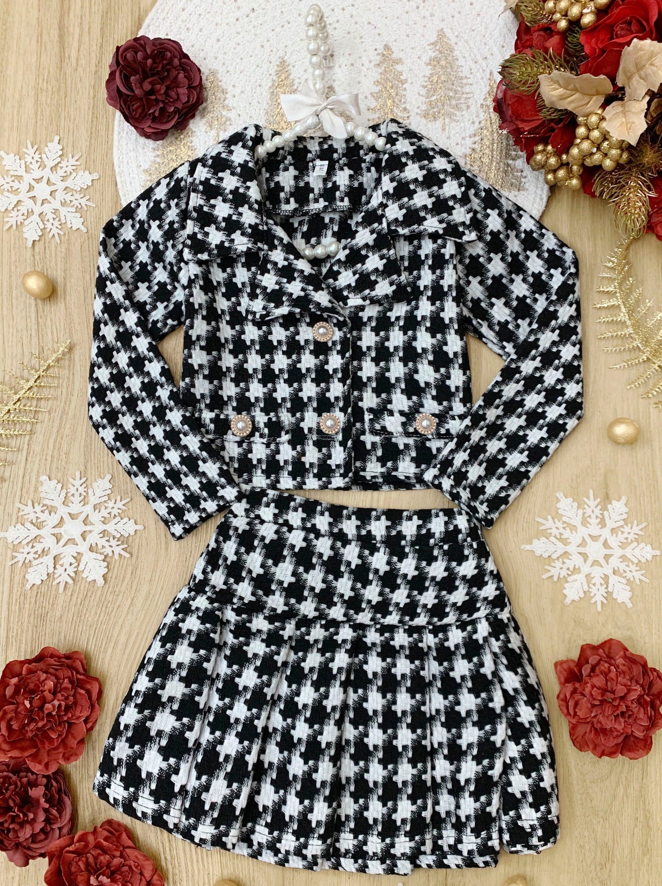 Pearl Houndstooth Luxe Blazer And Pleated Skirt Set