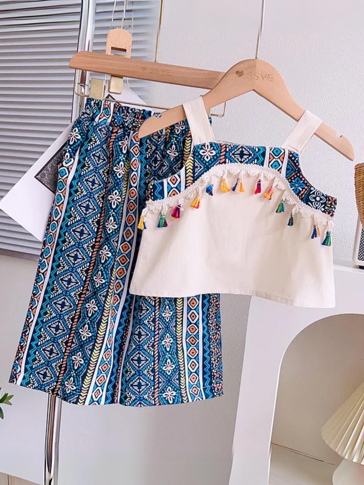 • Colors and swirls as bright as her personality! With our boho print wide-leg pants set, your little girl will be inspired to be her best self. Tassel details on top and a vibrant pattern on the bottom ensure her summer days will be extra fun.