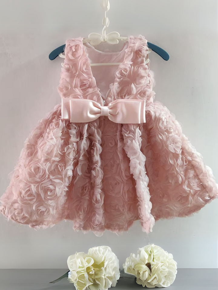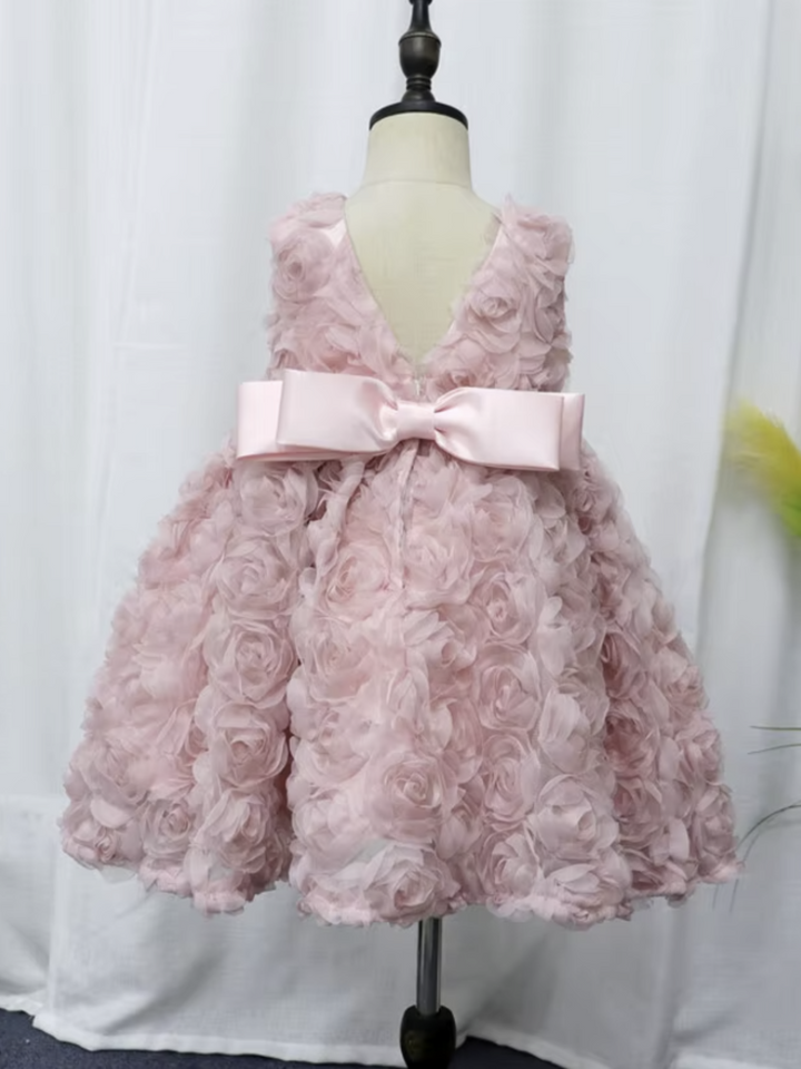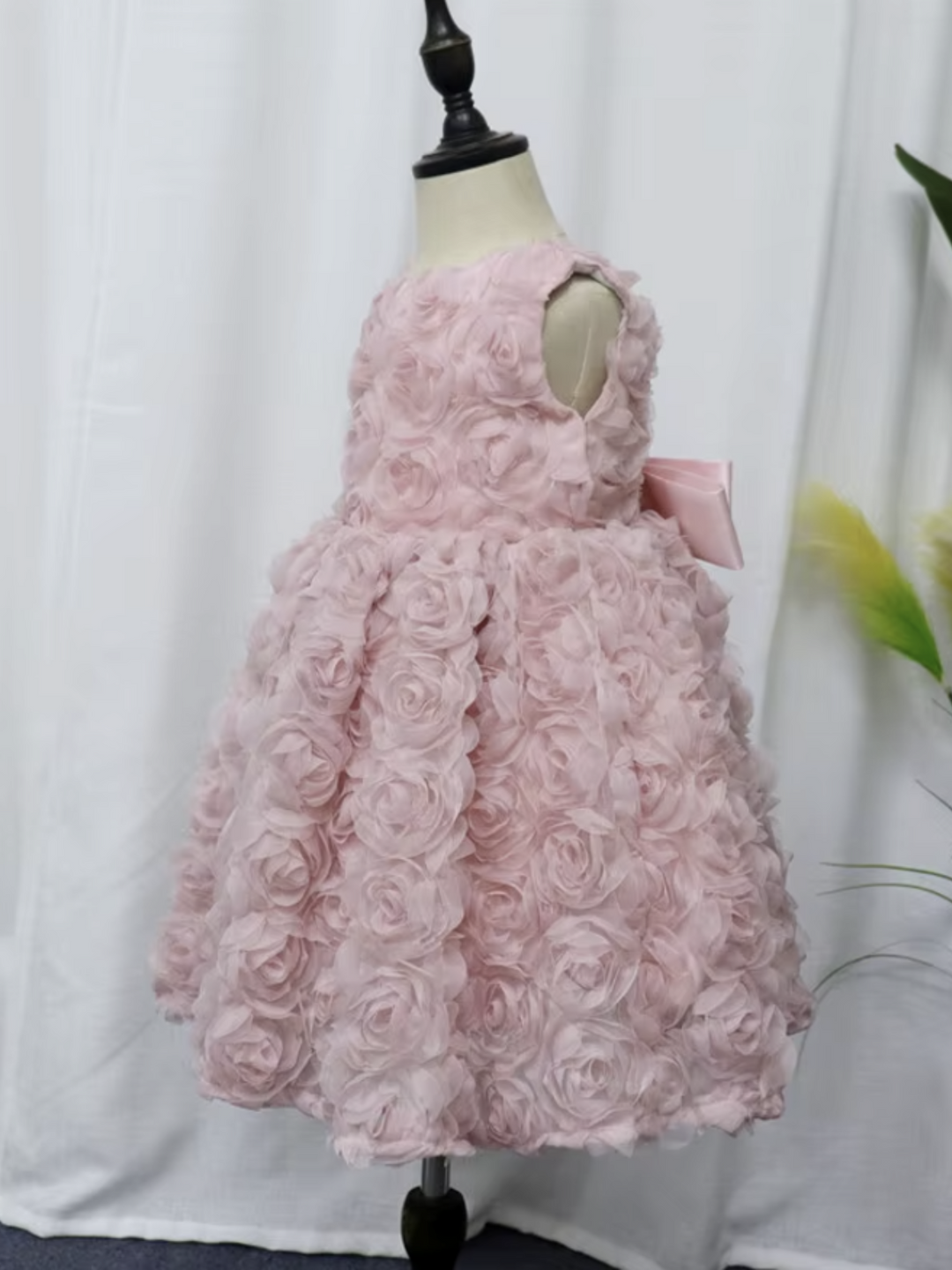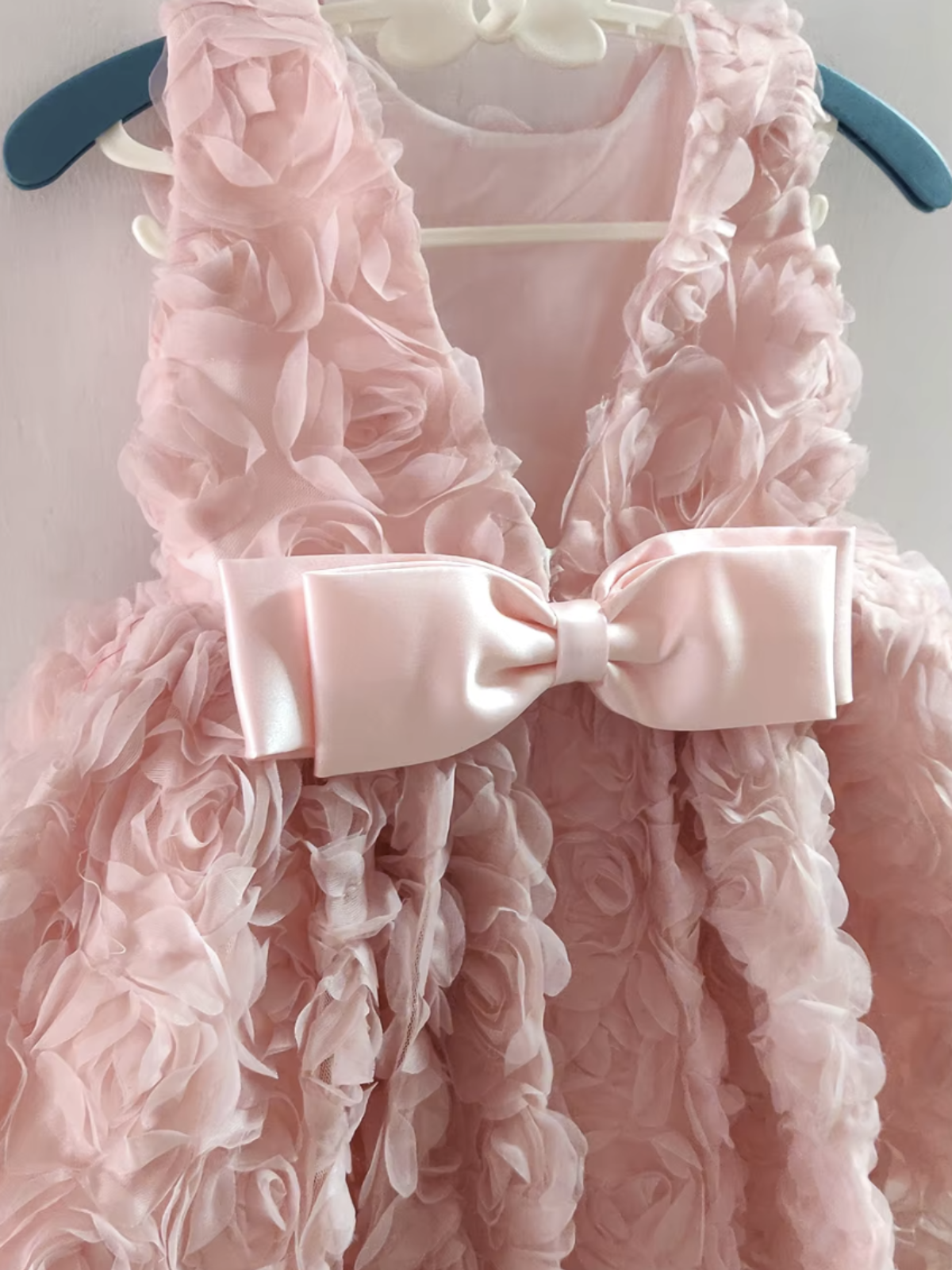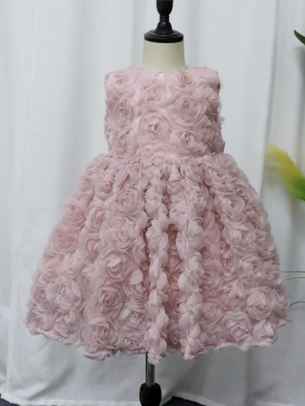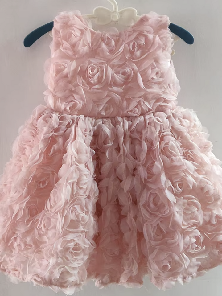 - Elegant blush pink dress featuring 3D rosette detailing for a stunning, textured look.