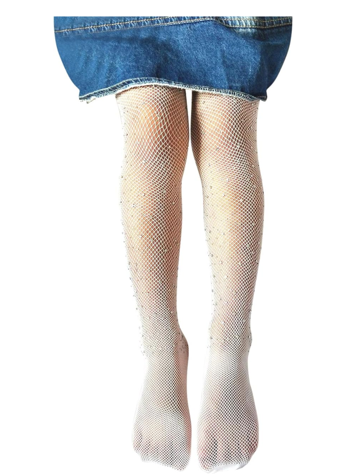 - Sparkly tights will jazz up any outfit. She will want to wear these with any and everything. Put the finishing touches on your little girl's Halloween or pageant costume with the perfect white crystal fishnet tights. It looks so cute when it all comes together!