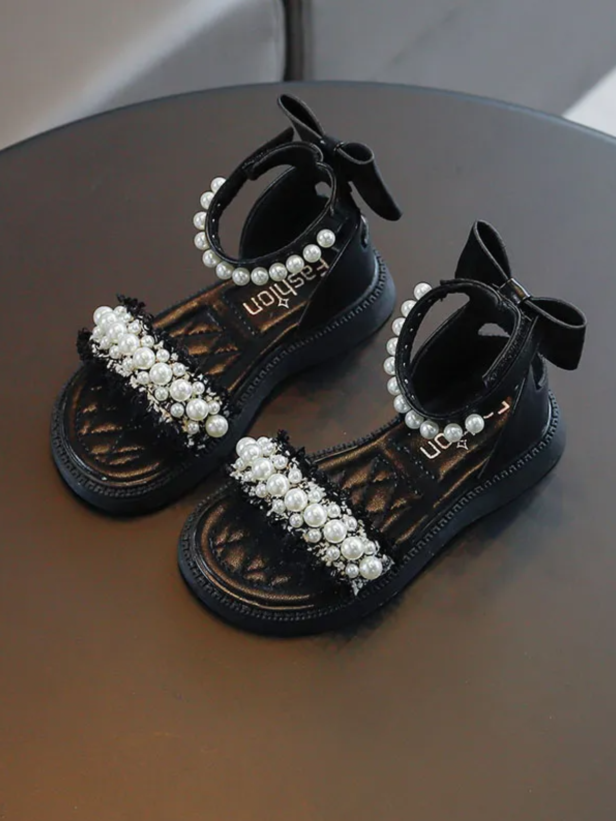 Make your little girl feel like a true princess with these elegant pearl-embellished sandals.