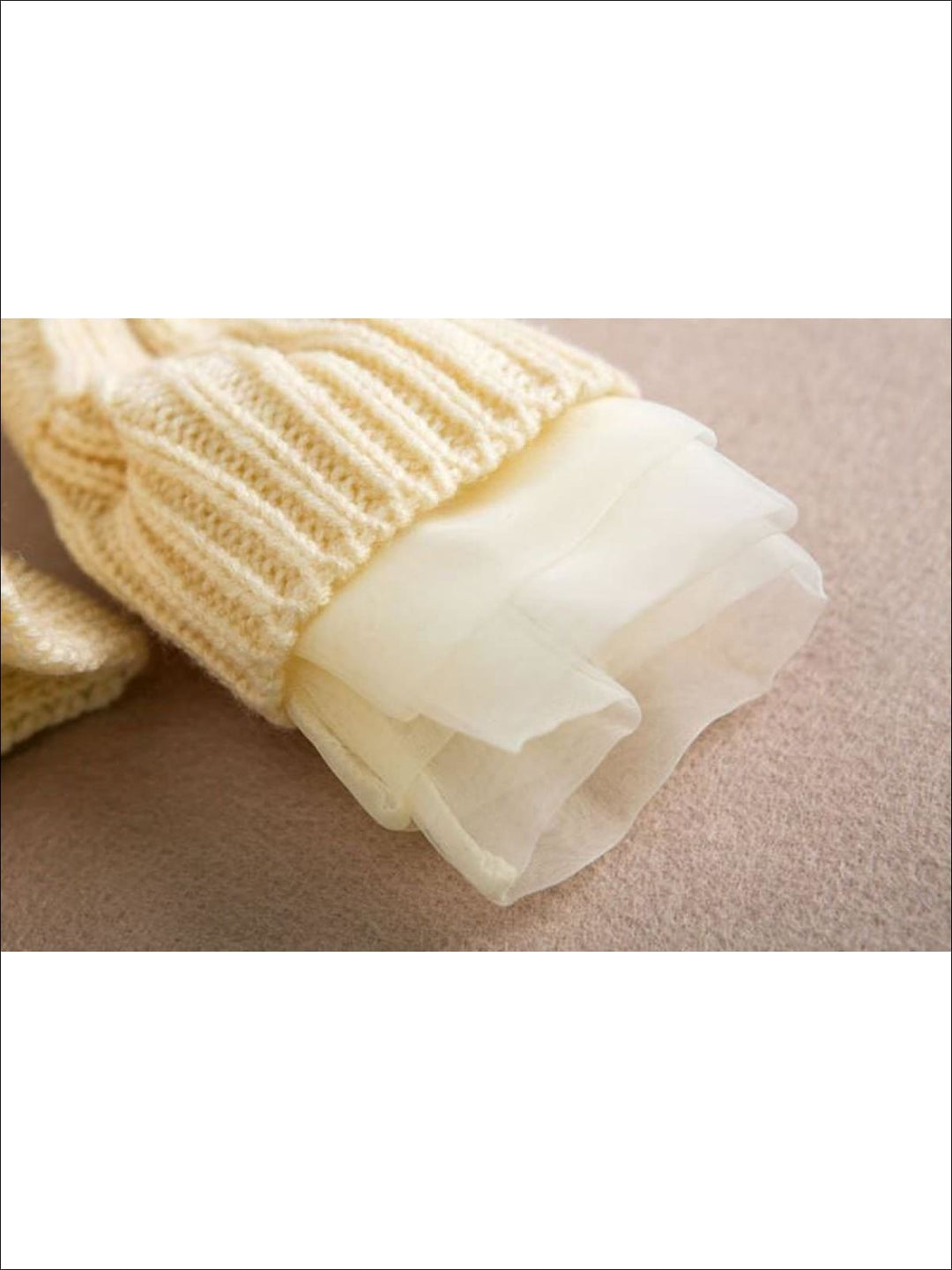 Cable knit long-sleeve sweater with tulle cuffs, and a tiered tulle peplum skirt