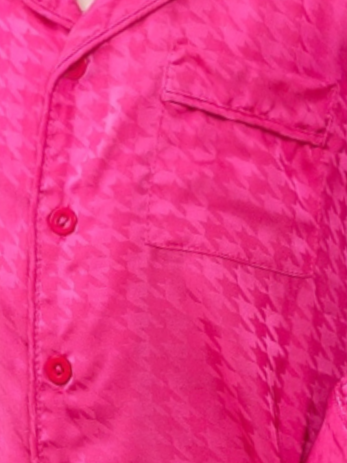 - Features a silky satin houndstooth fabric in a vibrant hot pink shade for the ultimate standout sleepwear.