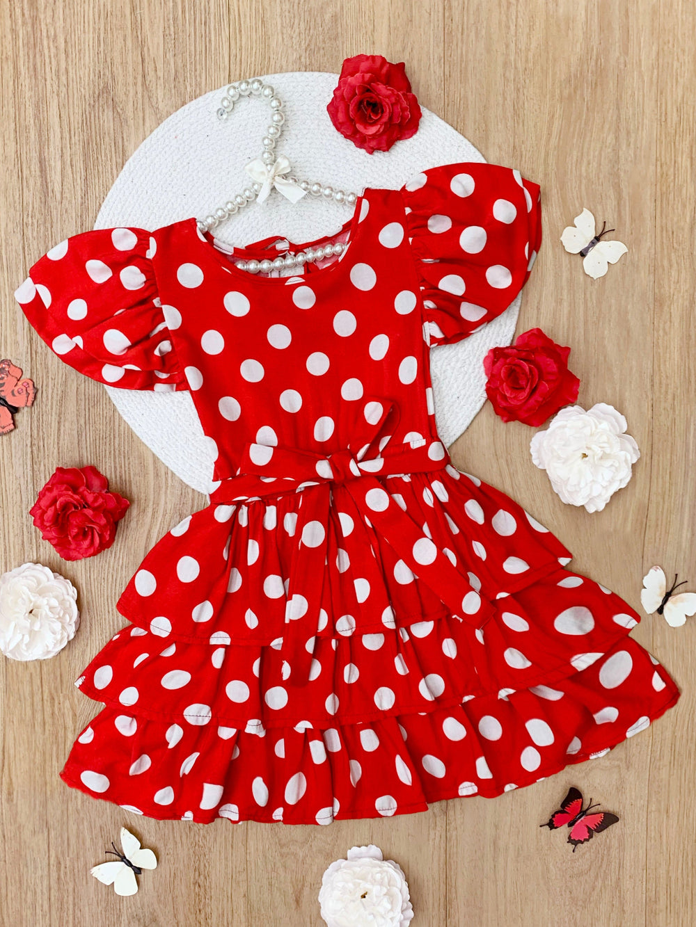 • Flutter sleeves and tiered ruffles add charm and movement for picture-perfect moments.