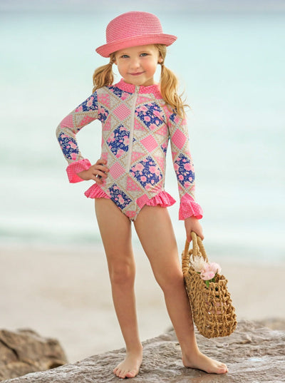 Girls Floral Patchwork One Piece Swimsuit | Mia Belle Girls Swimwear