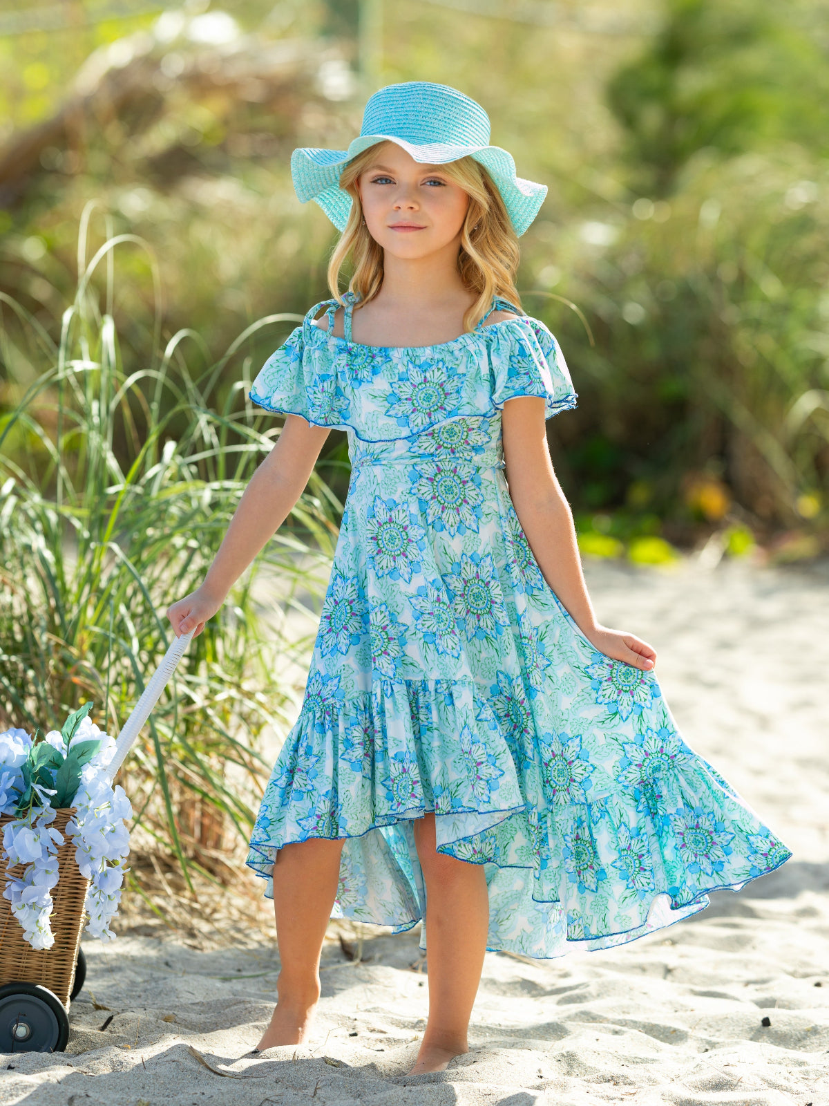 - Let her shine in our Blooming Blue Hi-Lo Ruffle Dress, a perfect blend of elegance and charm for any sunny occasion.