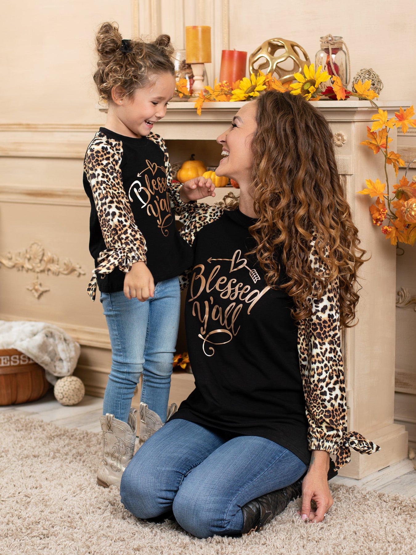 Mommy and Me Blessed Y'all Leopard Raglan Top