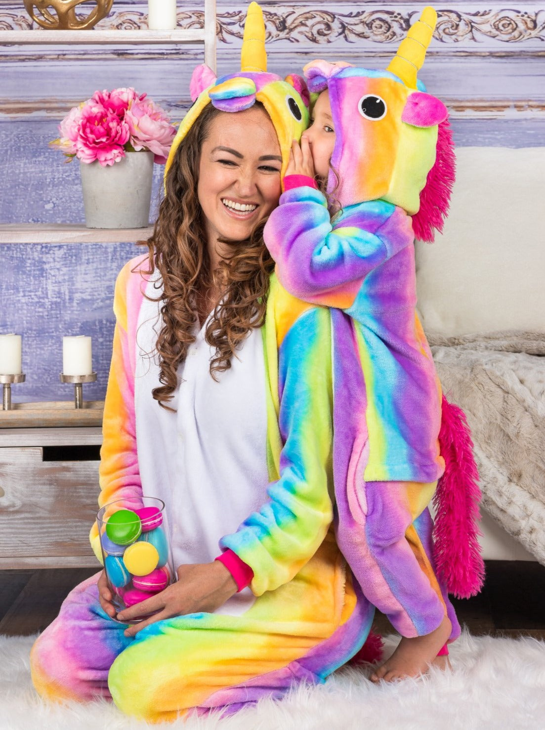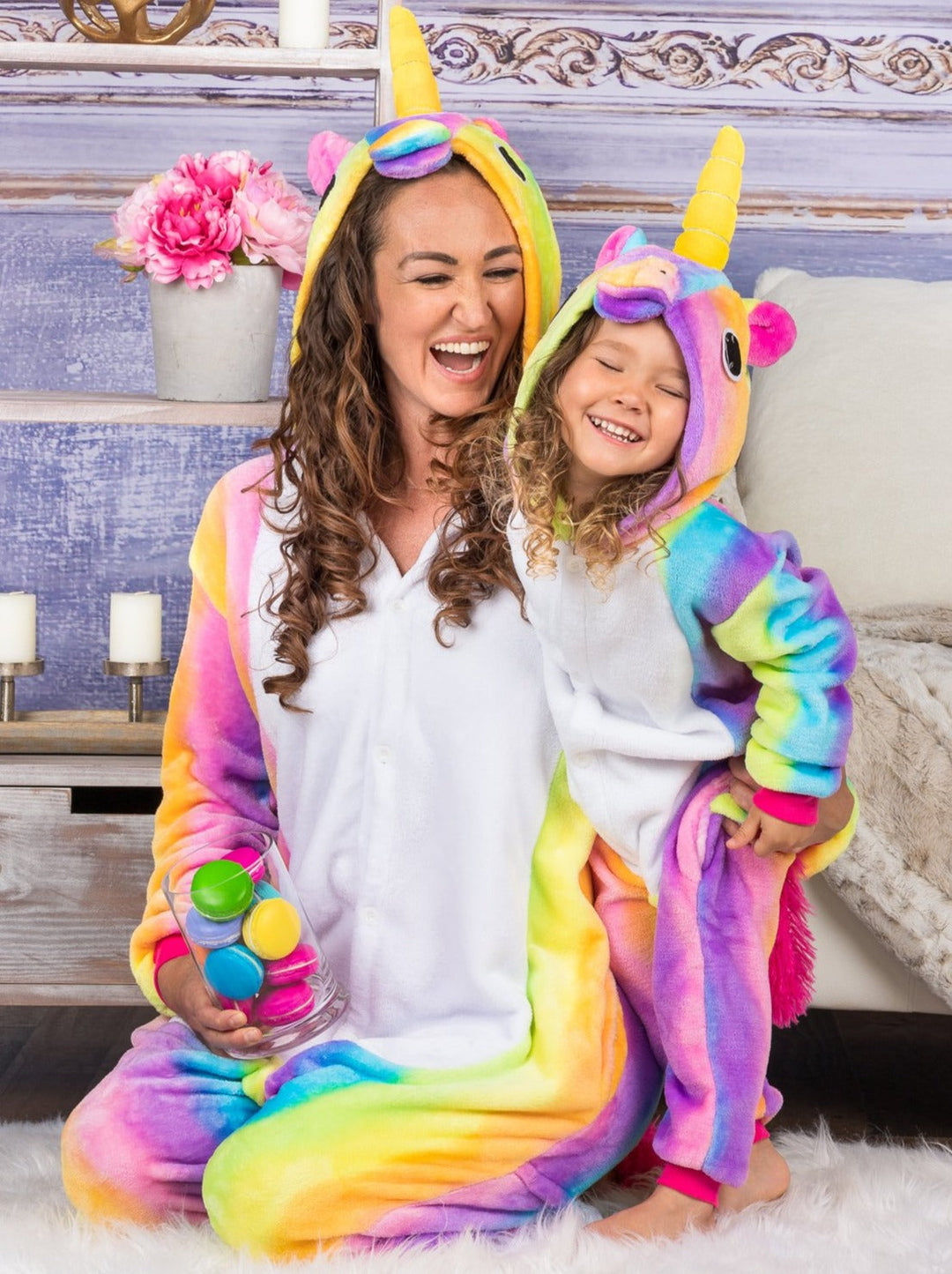 Mommy and Me Pastel Rainbow Unicorn Onesie Pajamas