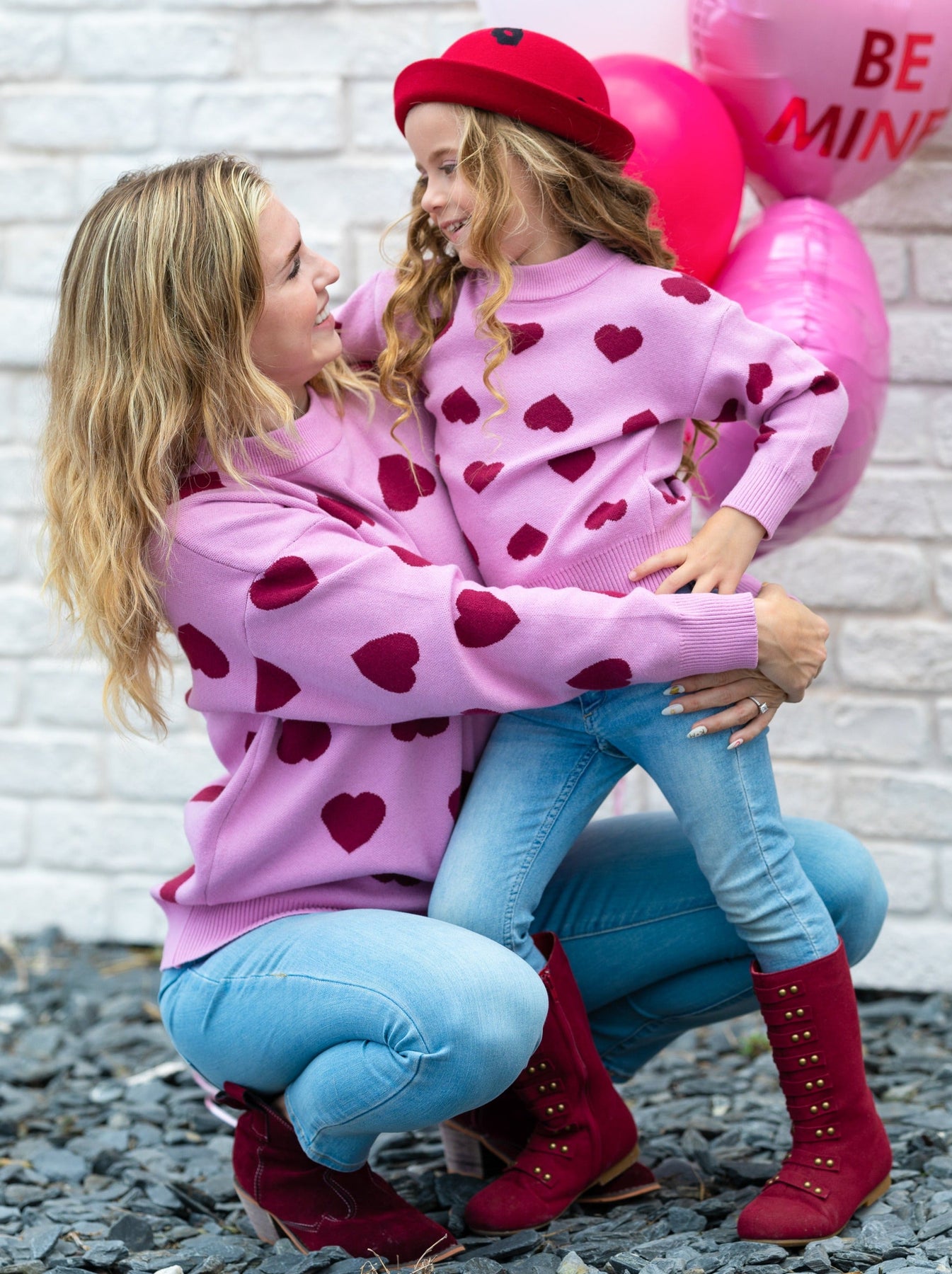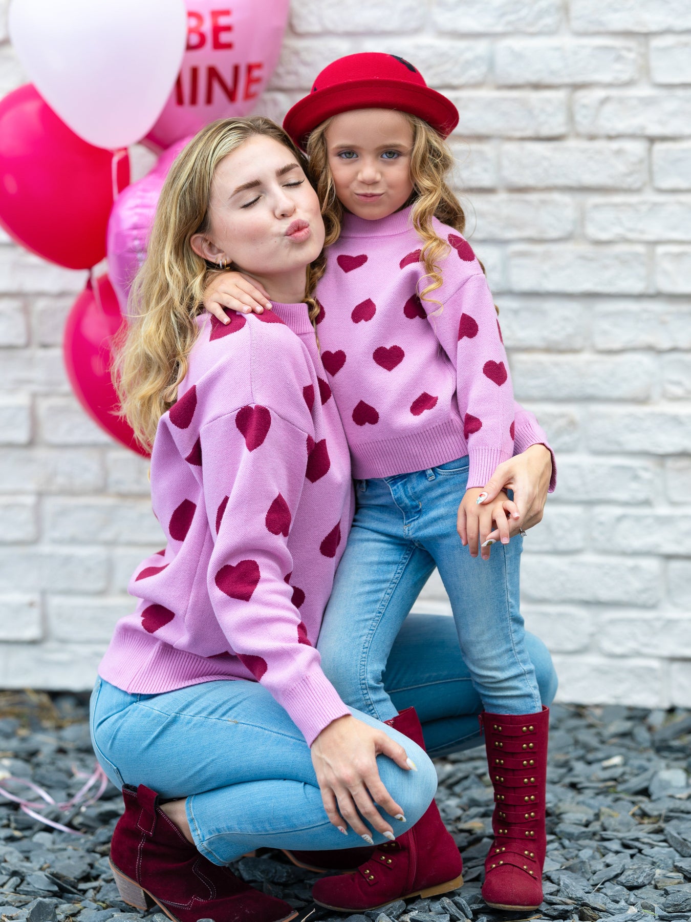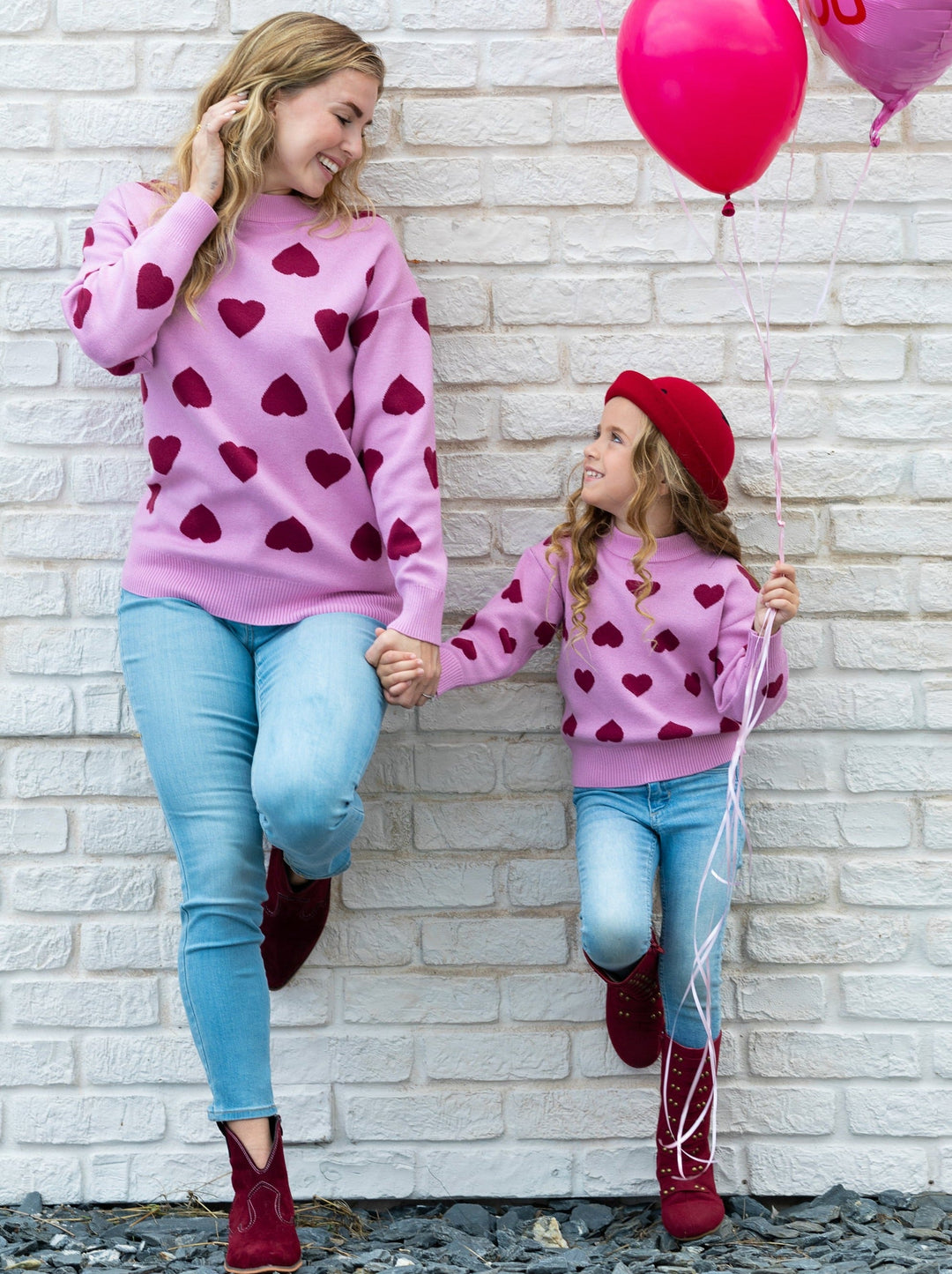 Mommy and Me Sweaters | Matching Heart Print Knit Pink Sweaters