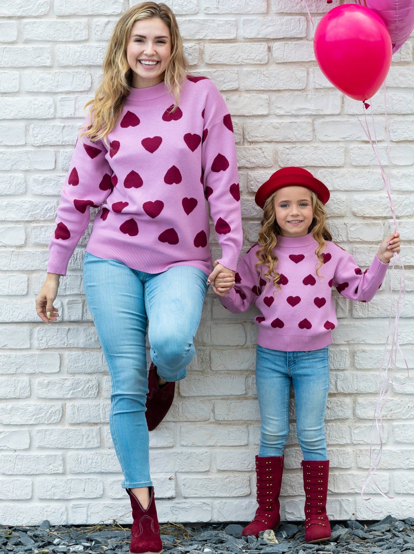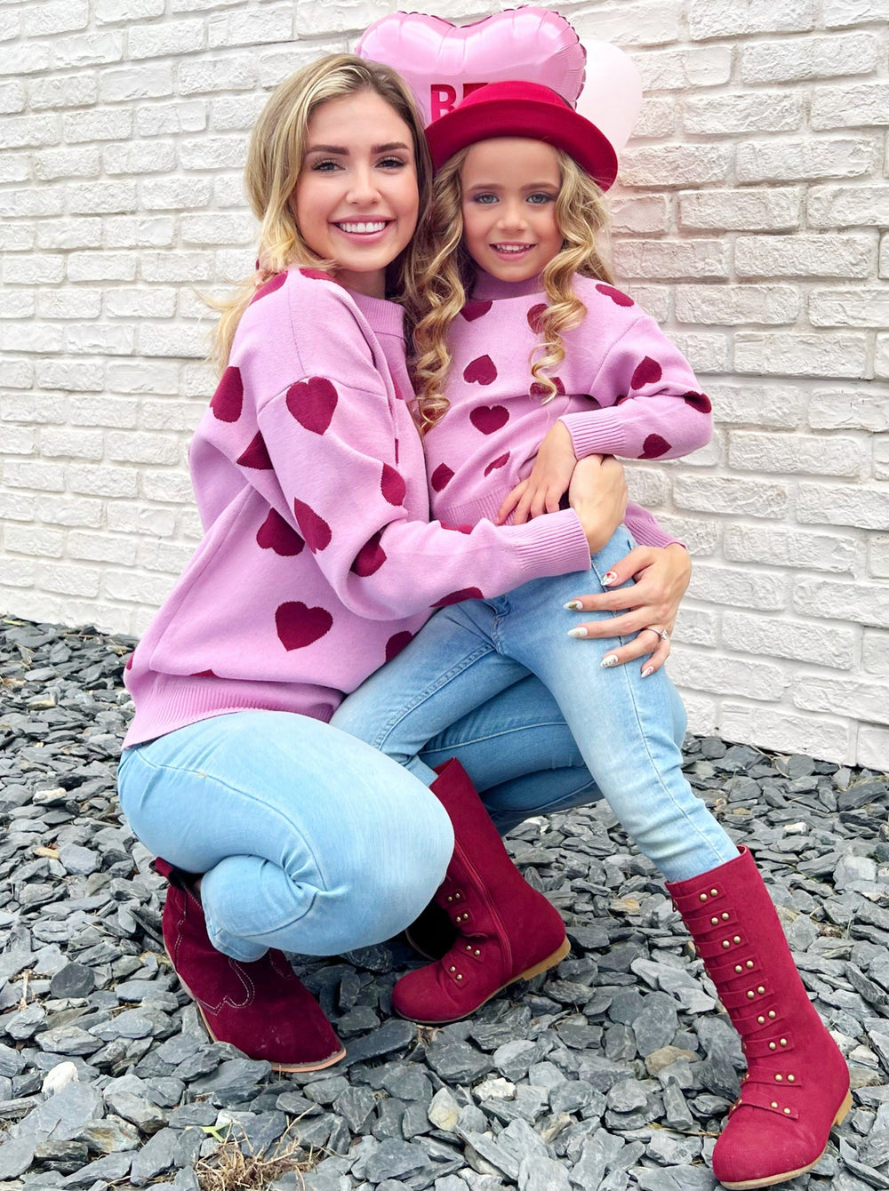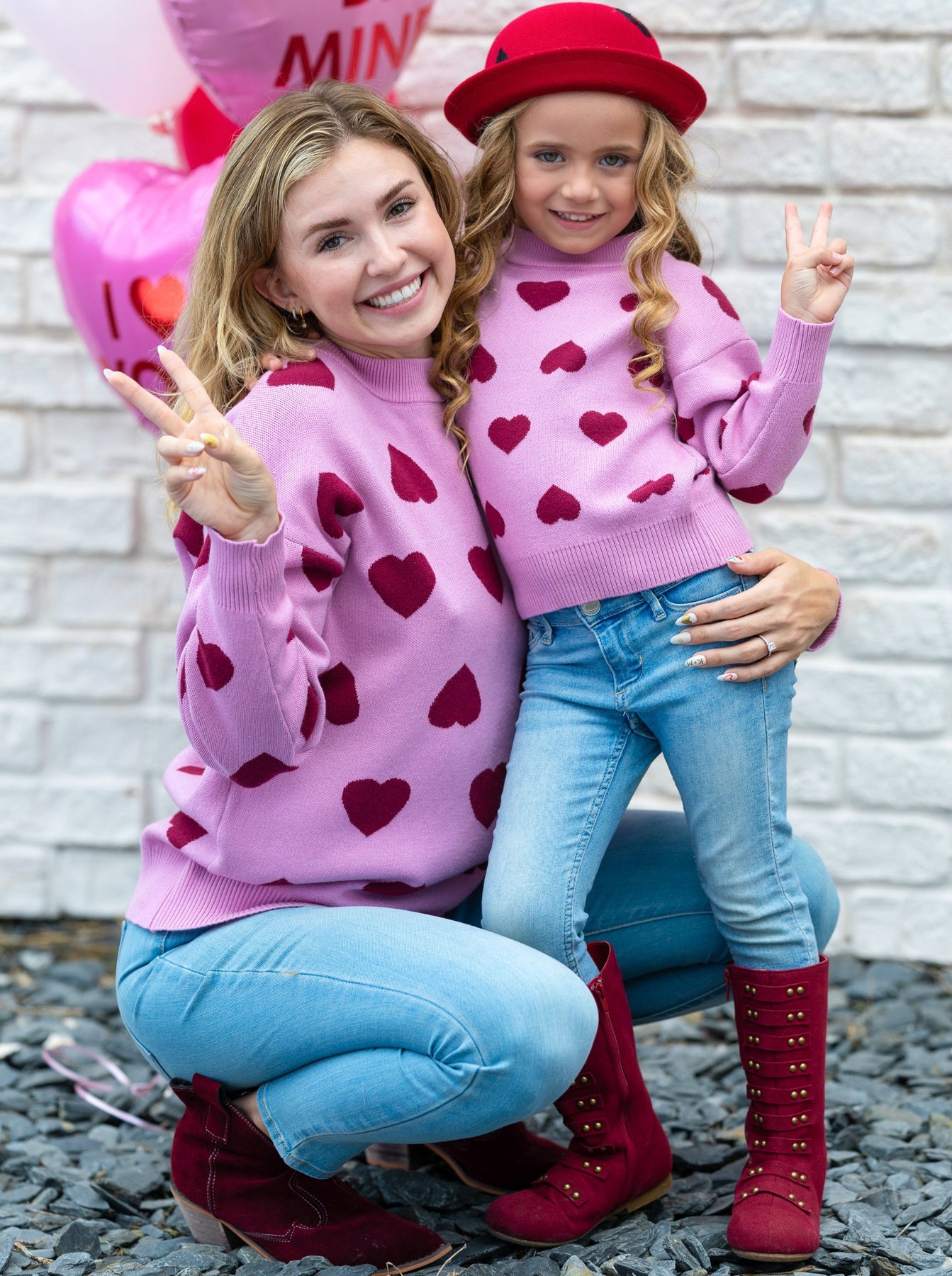 Mommy and Me Sweaters | Matching Heart Print Knit Pink Sweaters