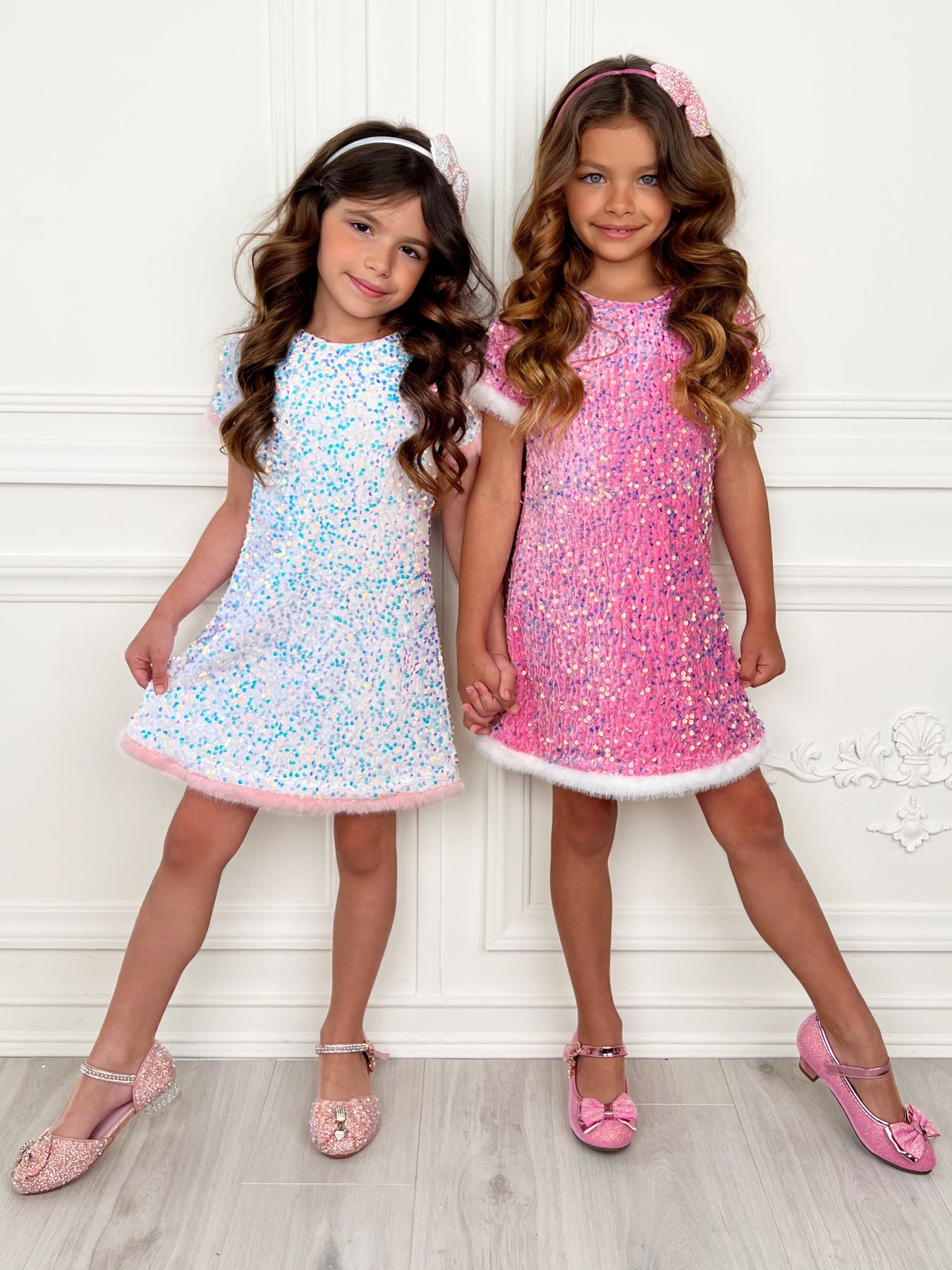 - Let your little one shine in this dazzling sequin dress, perfect for holiday celebrations or any special occasion!