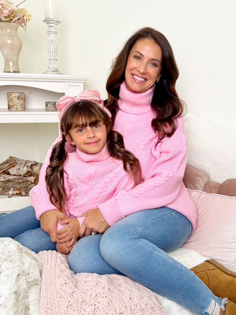 Mommy and Me Checkered Charm Pink Cardigan