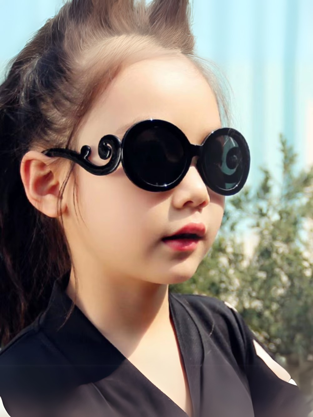 Girls Black Round Vintage Sunglasses