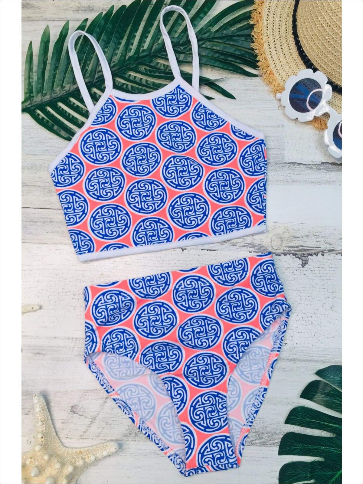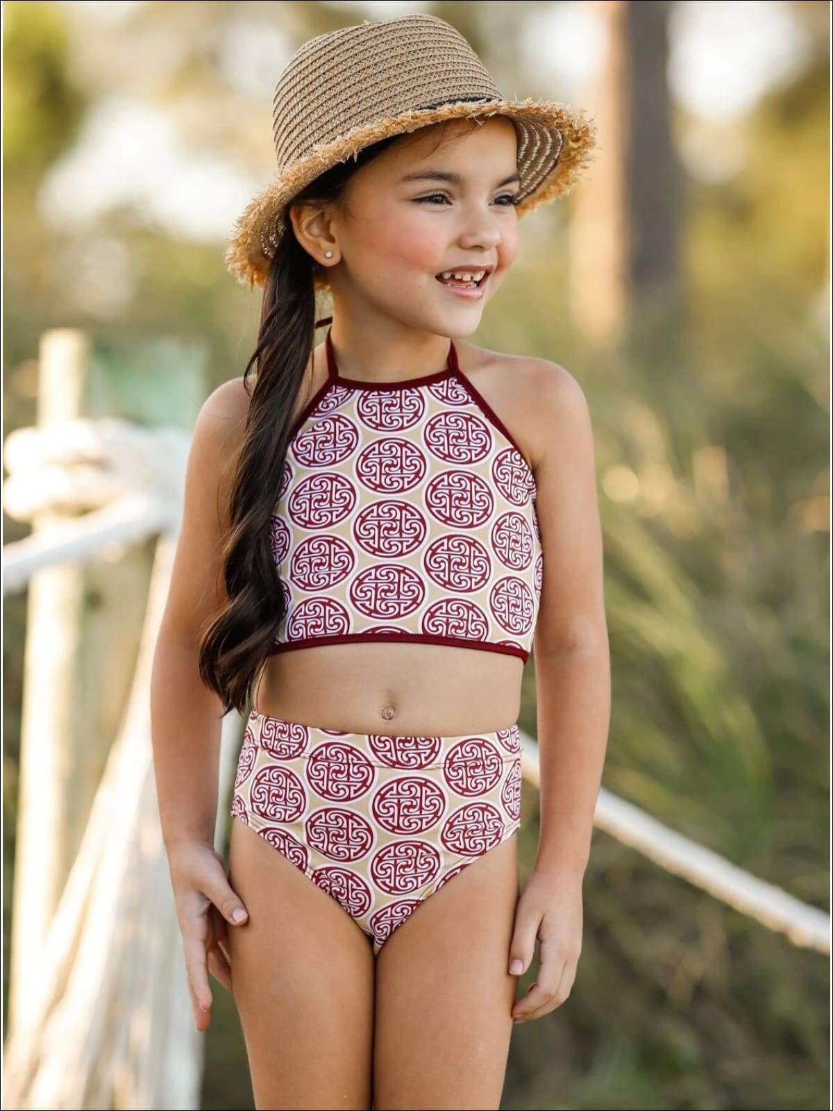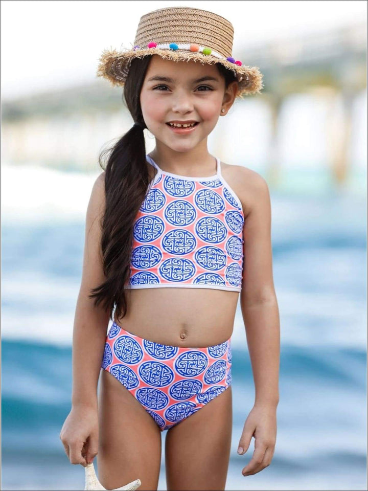 Two-piece halter top high-waisted swimsuit with Mandela print