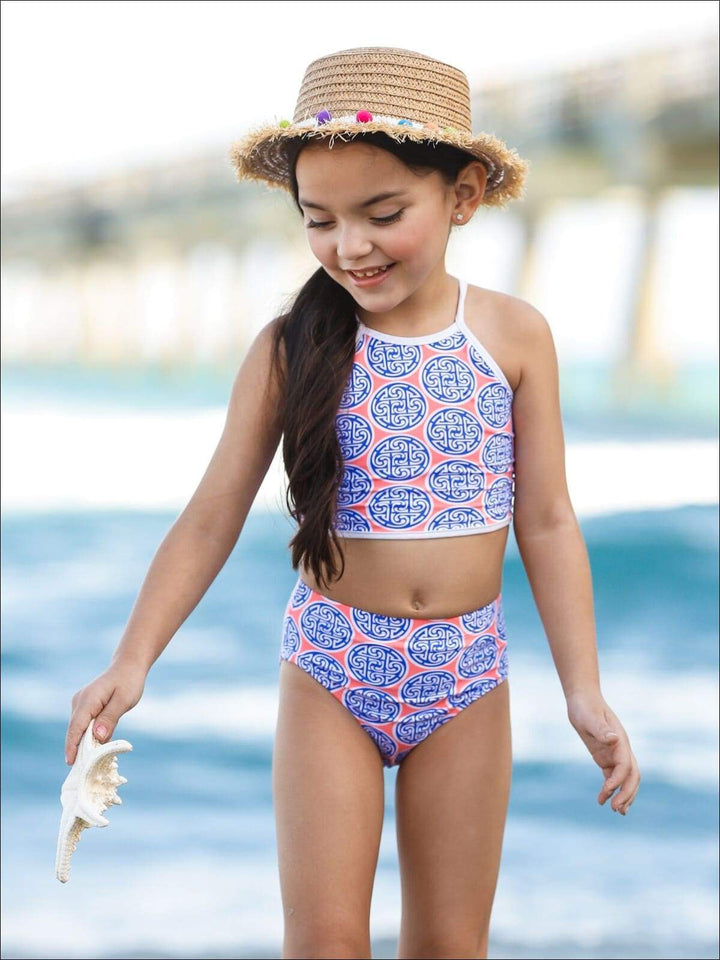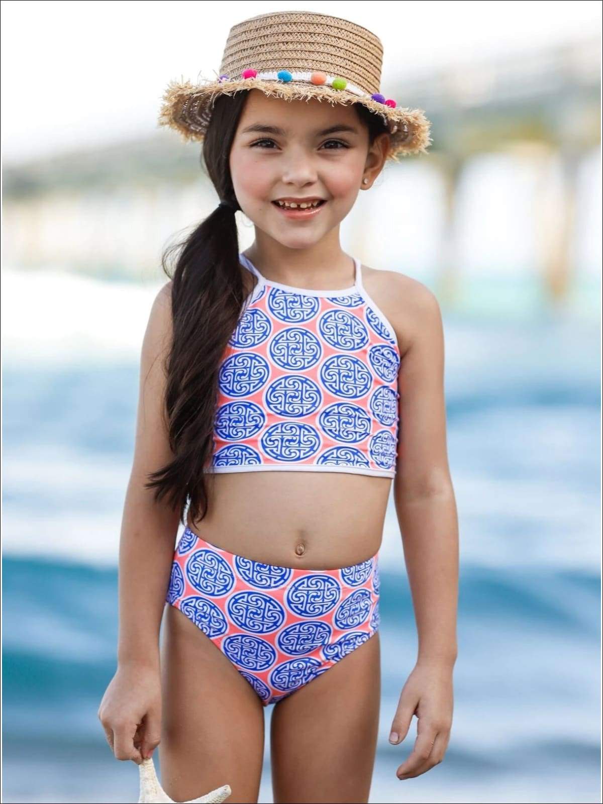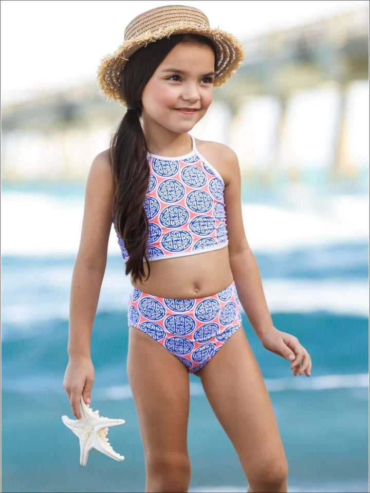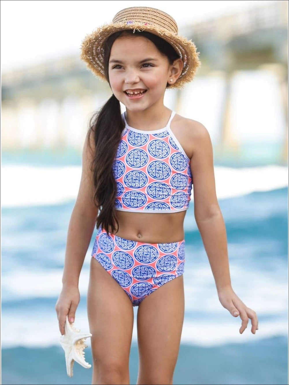 Your little beach cutie can splash the day away in style with this bright and trend-right two-piece swimsuit. The unique design and comfortable cloth will be one to show off next time your toddler is ready to hit the waves.