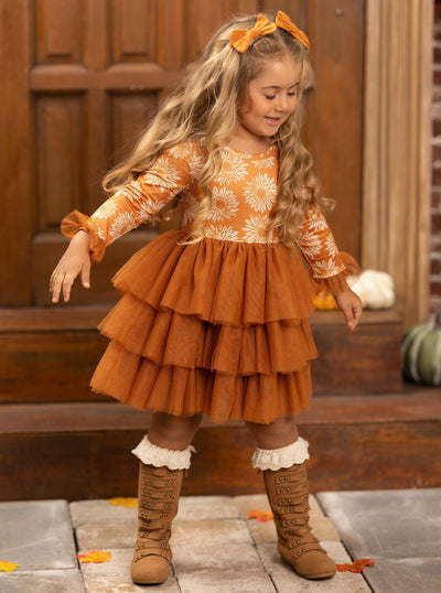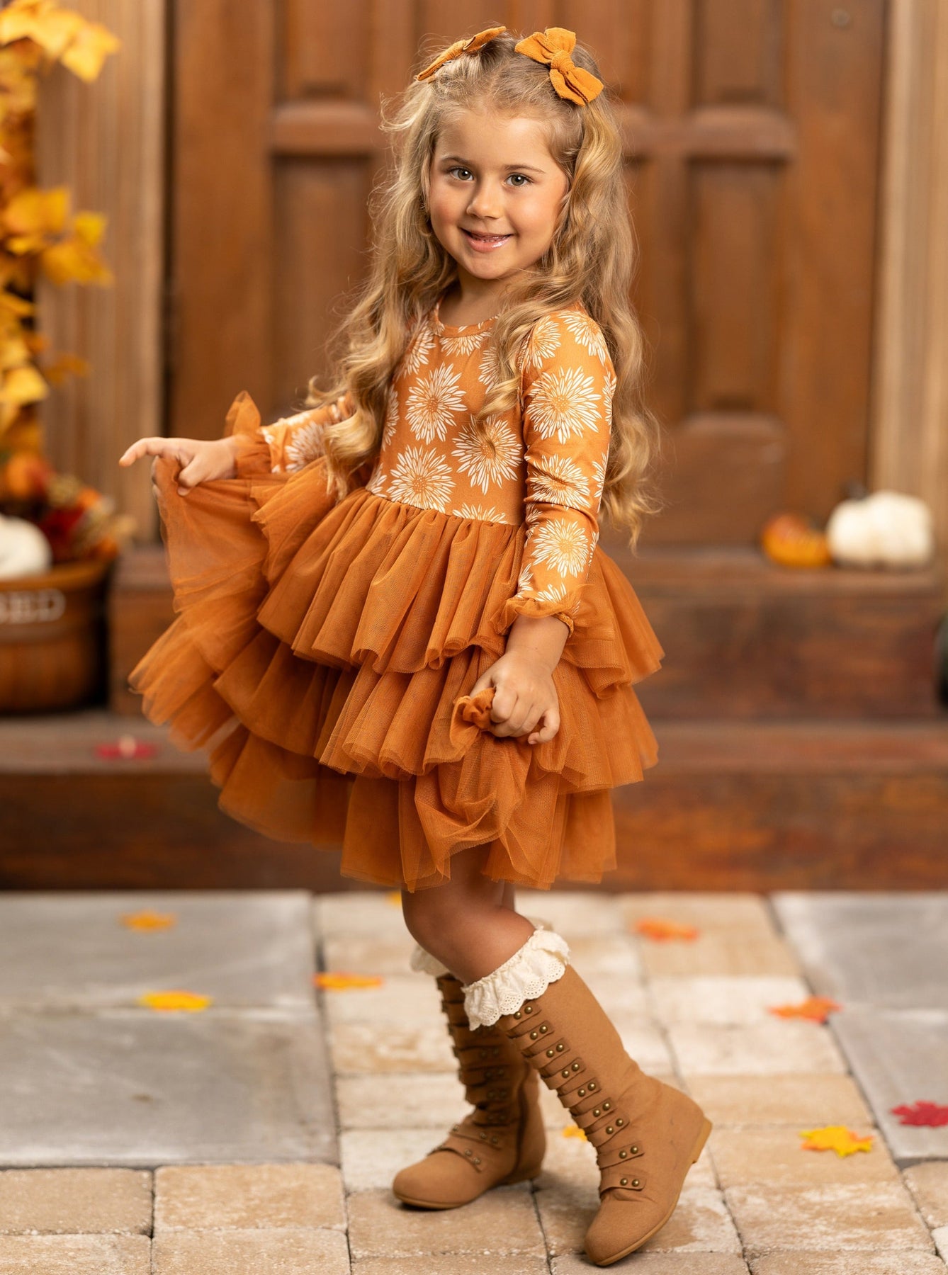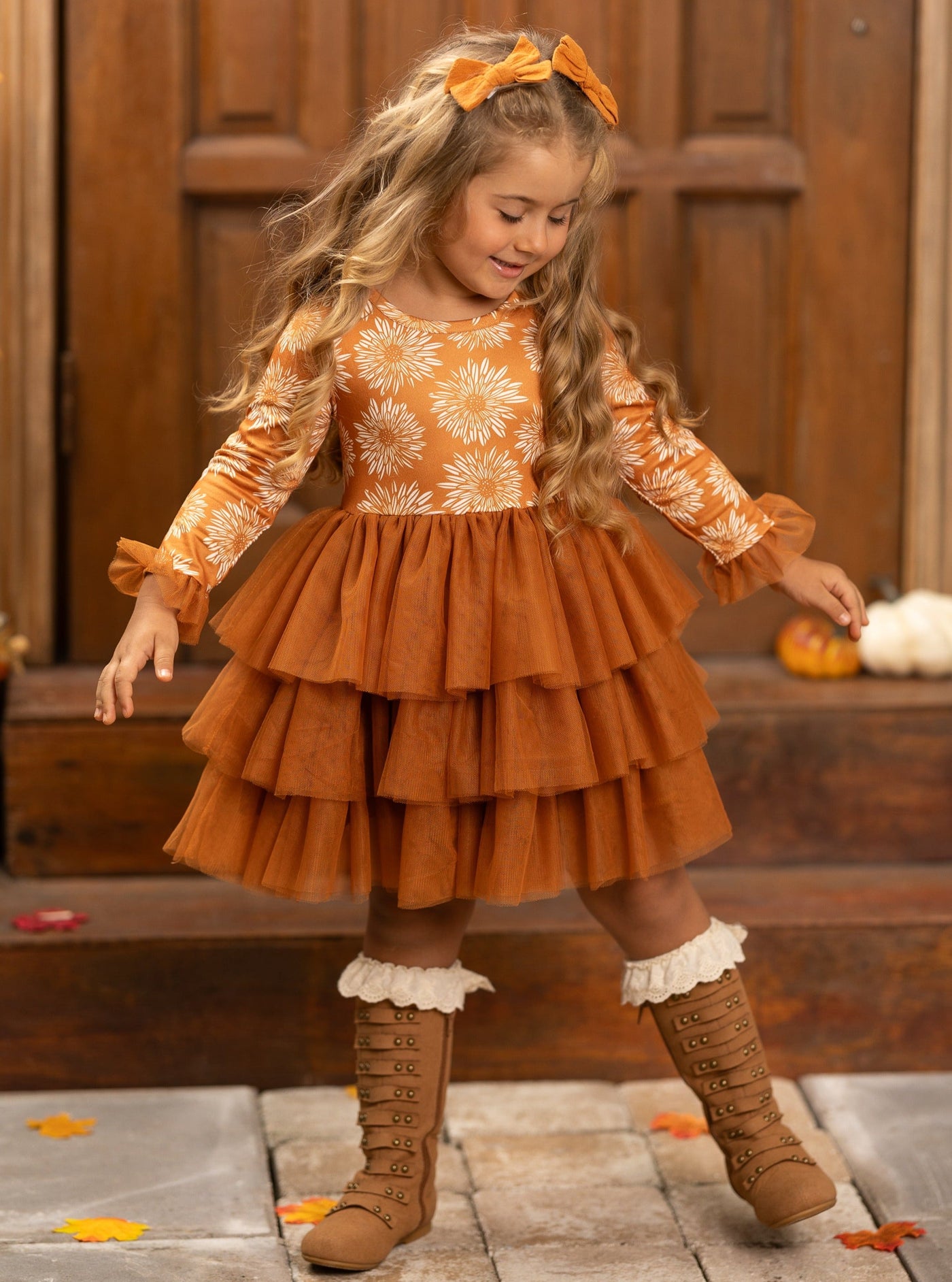 • Your little girl will be 'tutu' cute to handle in this brown ruffle tutu dress! Featuring a chic pattern on top and a beautifully layered tulle skirt at the bottom, this flirty frock will have your ballerina doing pirouettes all day long!