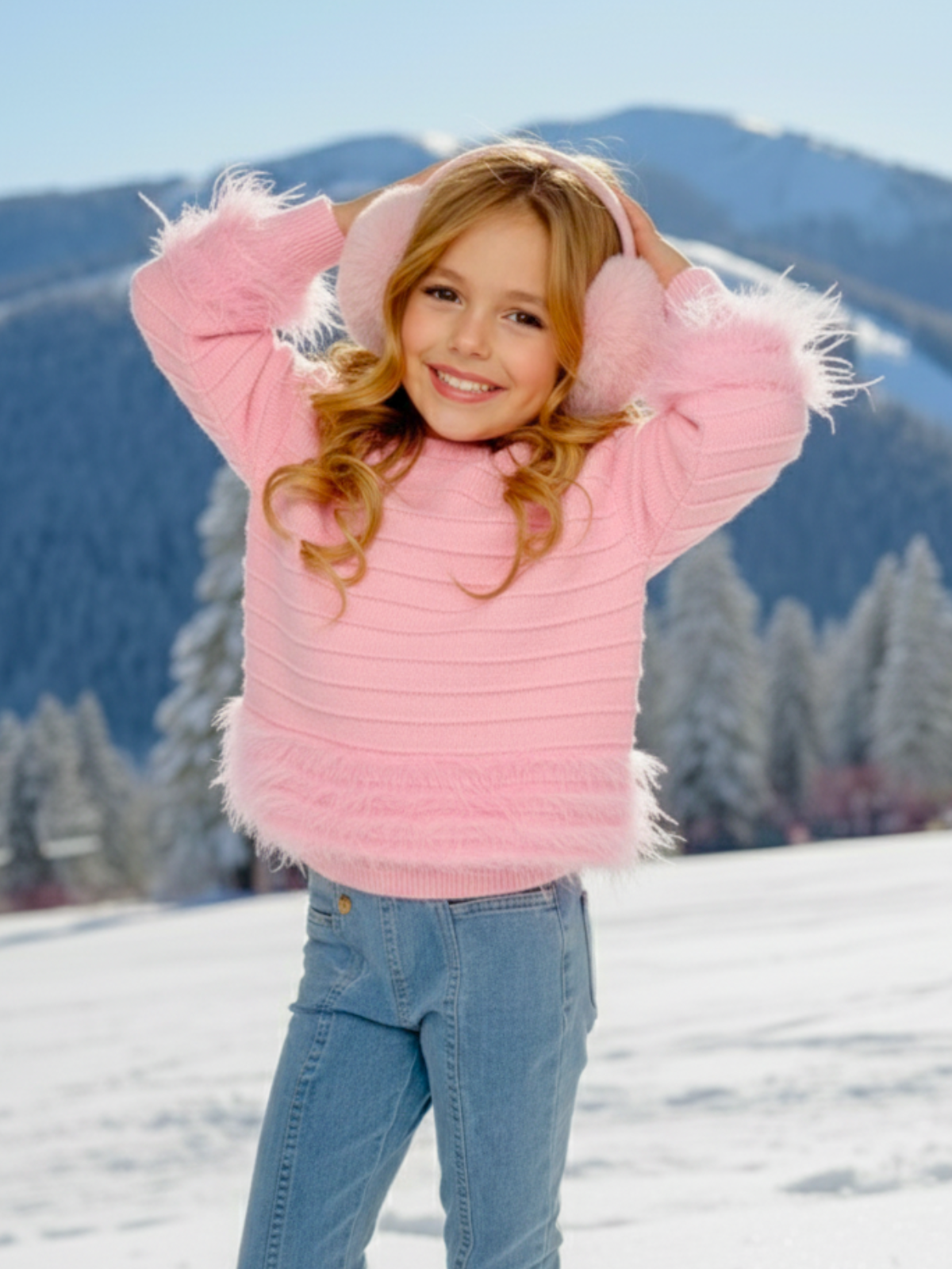 - Who says chilly days are no fun? This furry knit sweater will make sure your little trendsetter stays cute and photo-ready even when it's cold outside. Finished with faux fur details for extra charm.