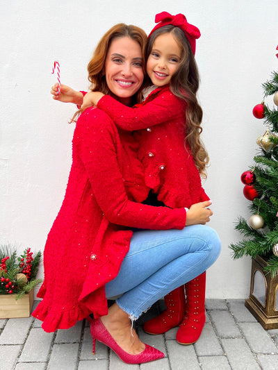 Mommy and Me Classy Blazer Ruffle Red Cardigan